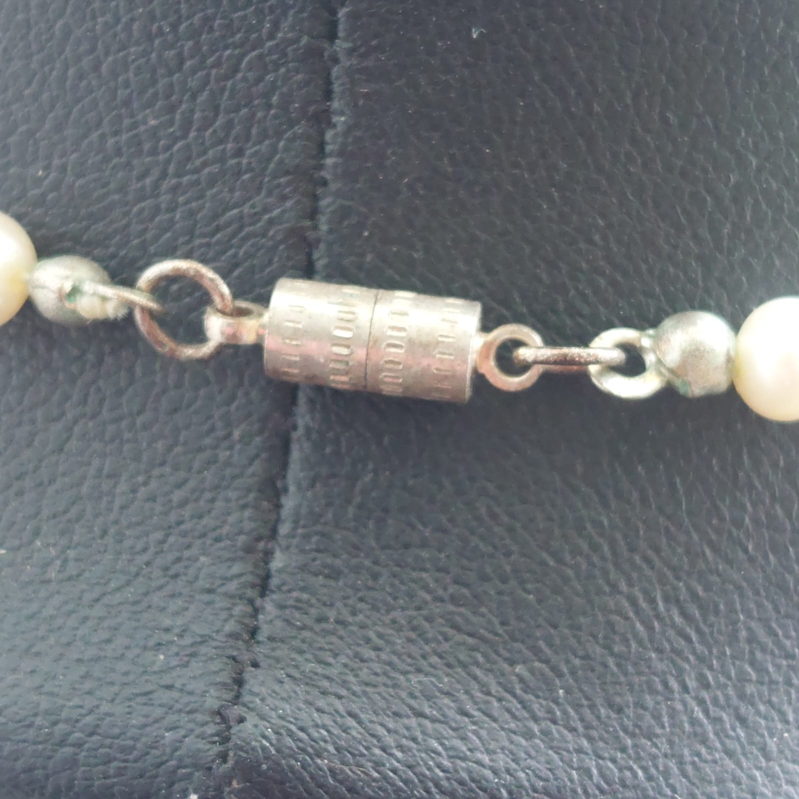 A handmade pearl necklace from SILVERPICKLE made by B THOMSON approx 48cm long. Magnetic clasp.