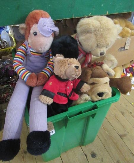 CRATE OF SOFT TOYS INCLUDING HARRODS BEAR