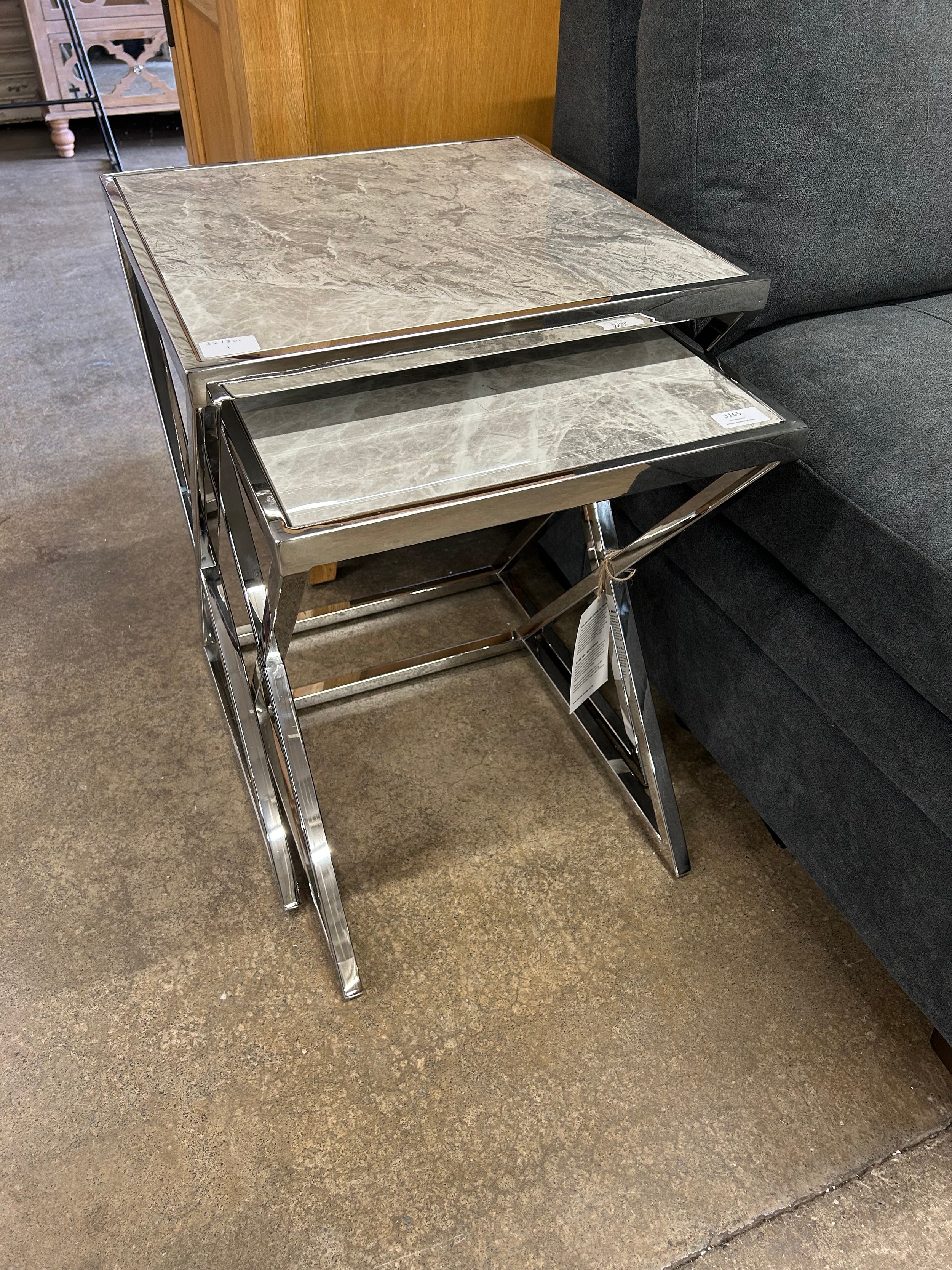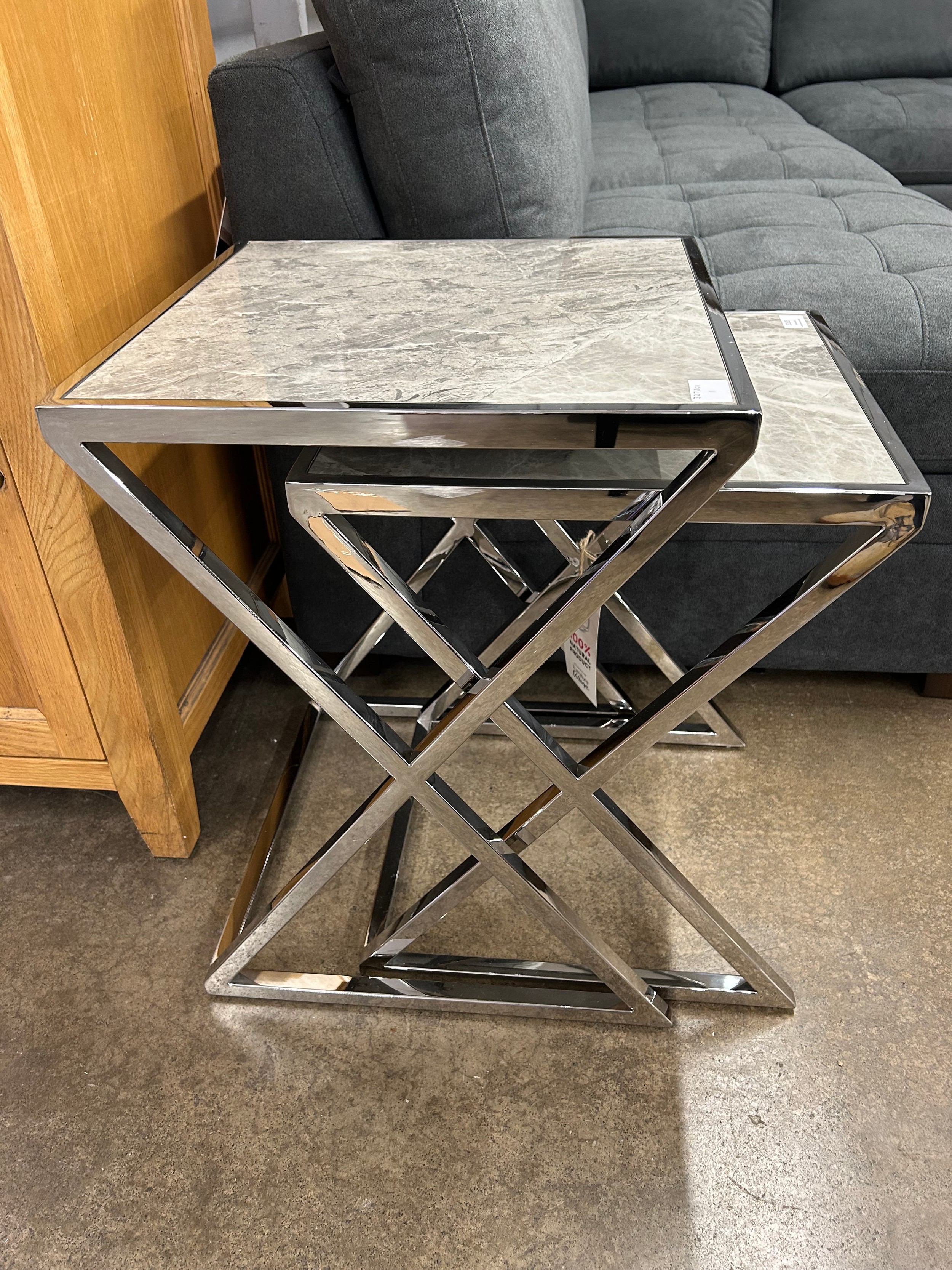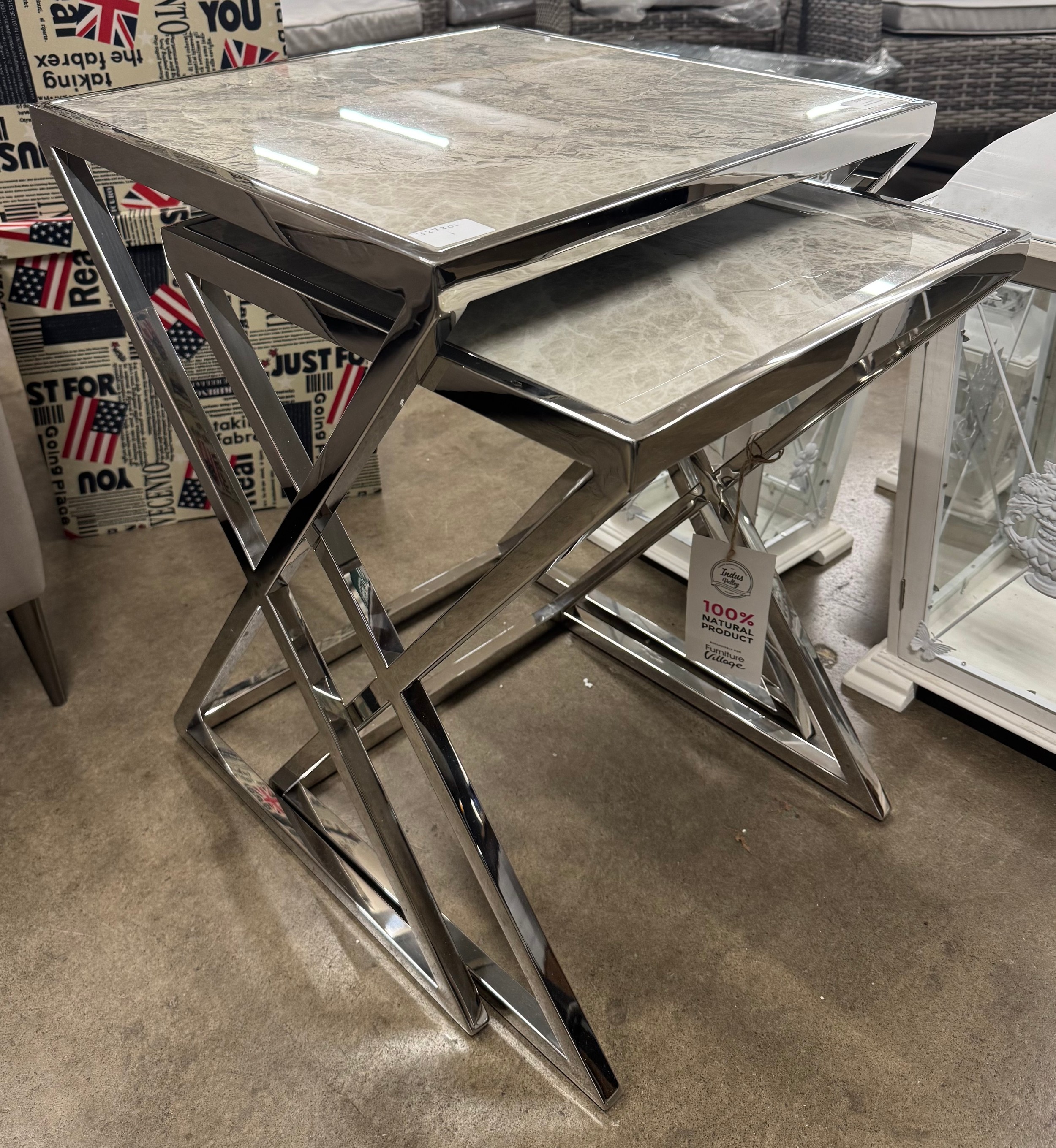 A Vanquish nest of two tables with chrome base *This lot is ...