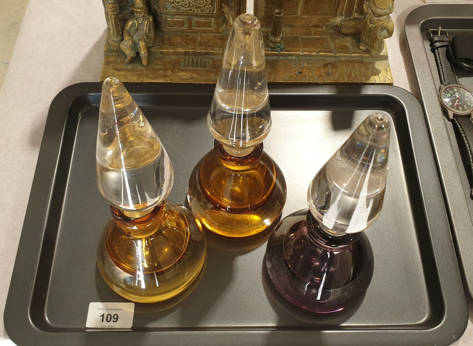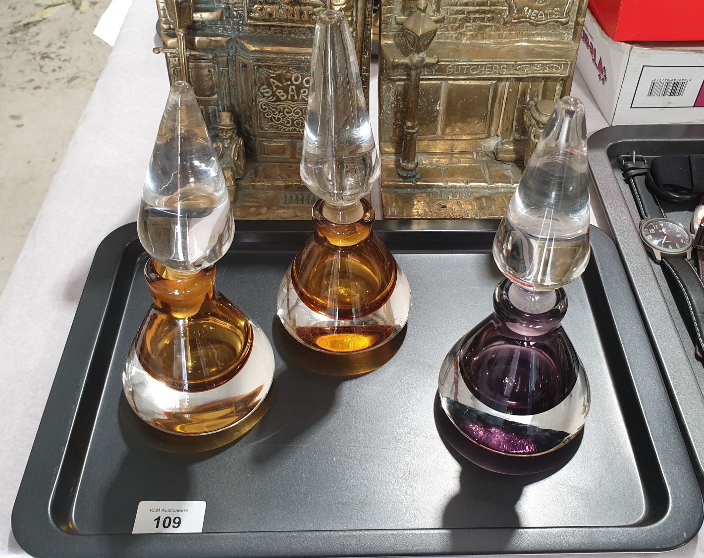 Three Somerso perfume bottles, height 8.5". No shipping. Arrange collection or your own packer and shipper, please.