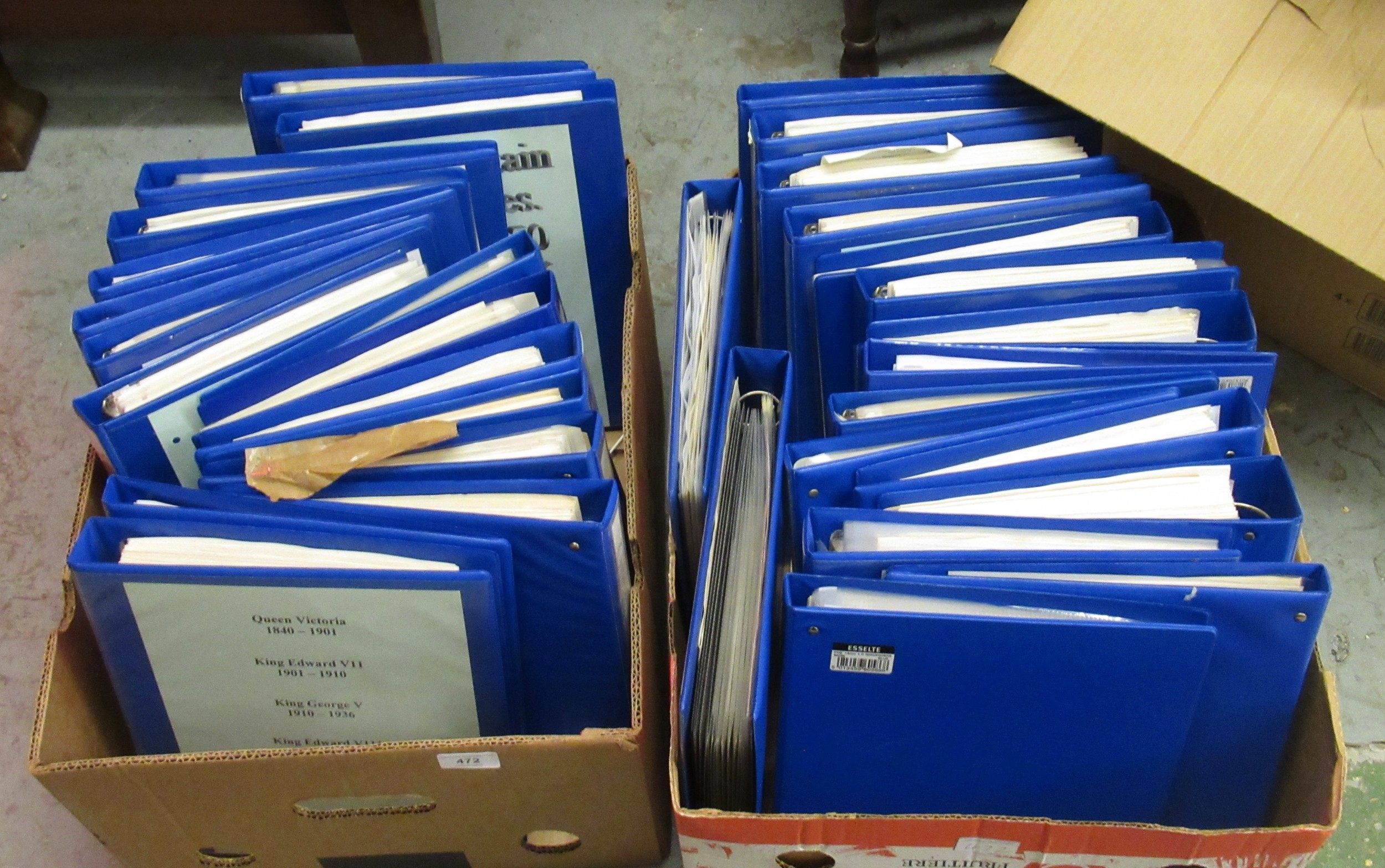 Two boxes containing large quantity of Great Britain stamps in blue albums