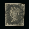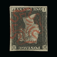 Great Britain - QV (line engraved) : (SG 3c) 1840 1d greyish black, plate 11, NB, 4 small to large margins, faint guide line in NE corner, odd small blemish, full crisp black MC, f.u. Cat £4600 (image available) [US1]