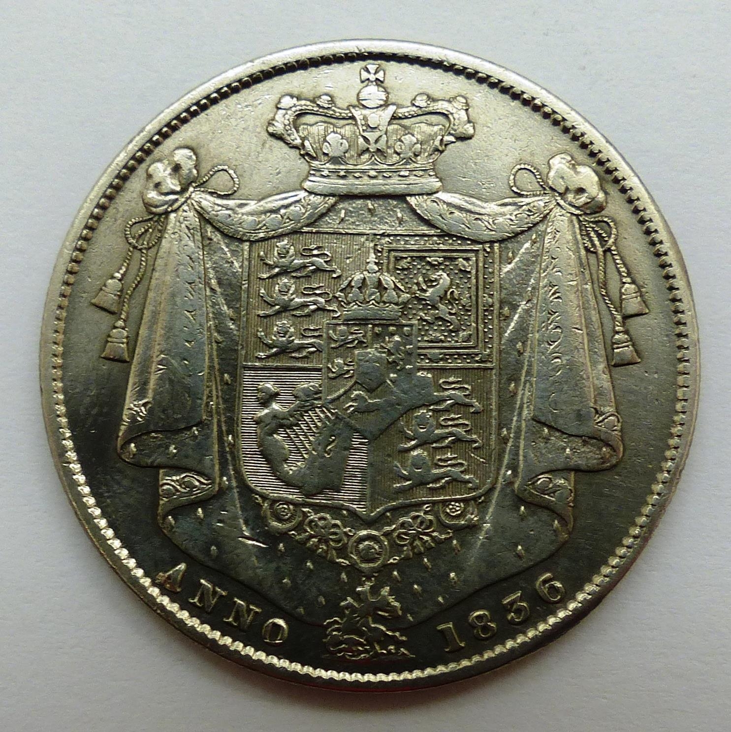 1836 William IV silver half crown. P&P Group 0 (£5+VAT for the first lot and £1+VAT for subsequent lots)