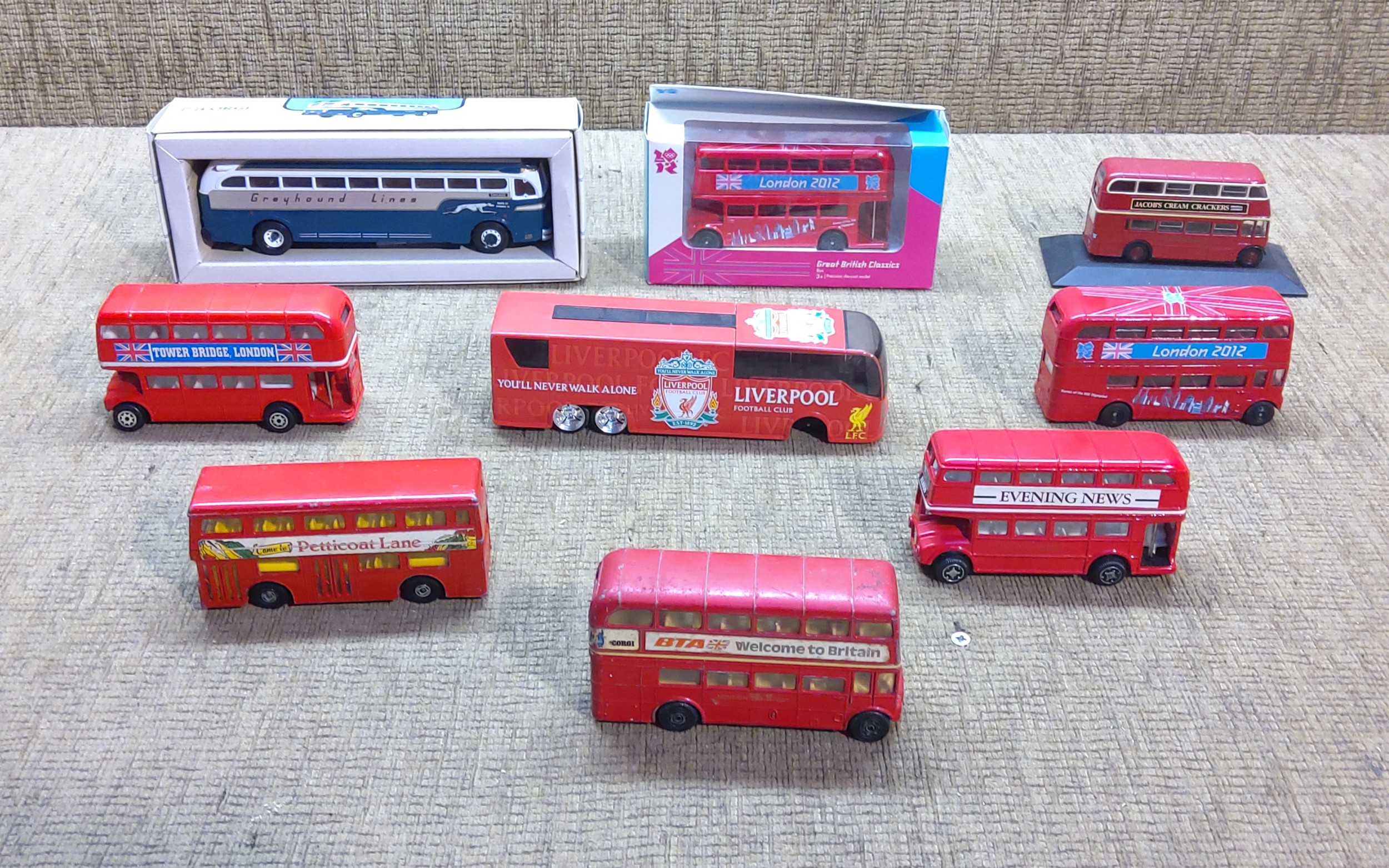 Collection of diecast busses including Corgi.