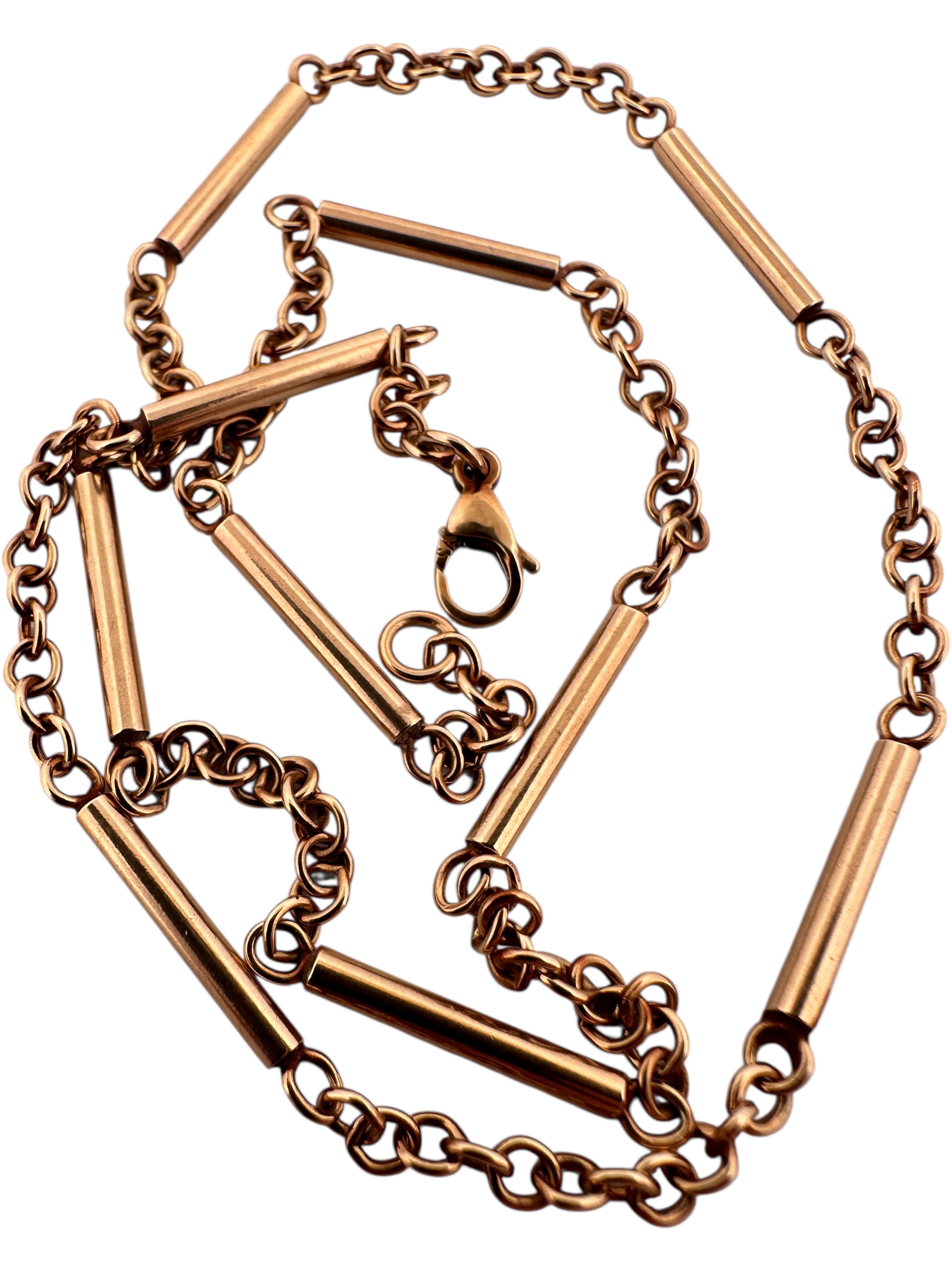 Nine Carat Gold Chain & Bar Link Necklace. Marked '9k' '375'. 16.5" Long. 8.23g