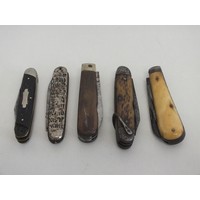 Five penknives, featuring brands such as Wostenholm, Cole & Deakin, and one from the Republic of Ireland.