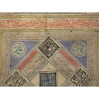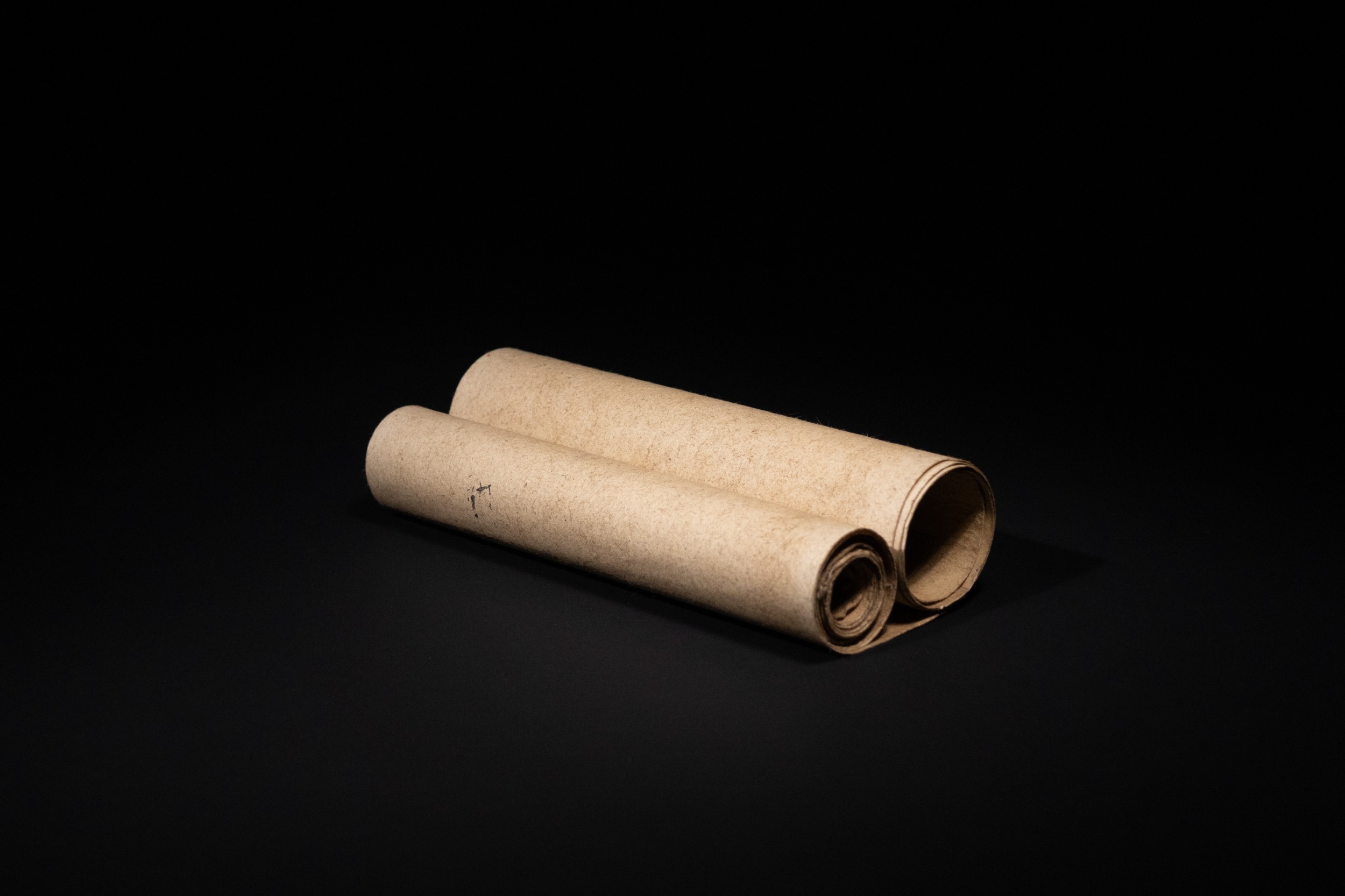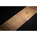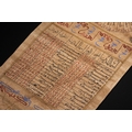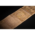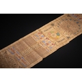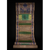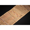 The scroll is in good condition for its age. It exhibits typical signs of wear consistent with an antique manuscript, including creasing and an aged patina. No significant damage or major repairs are apparent.