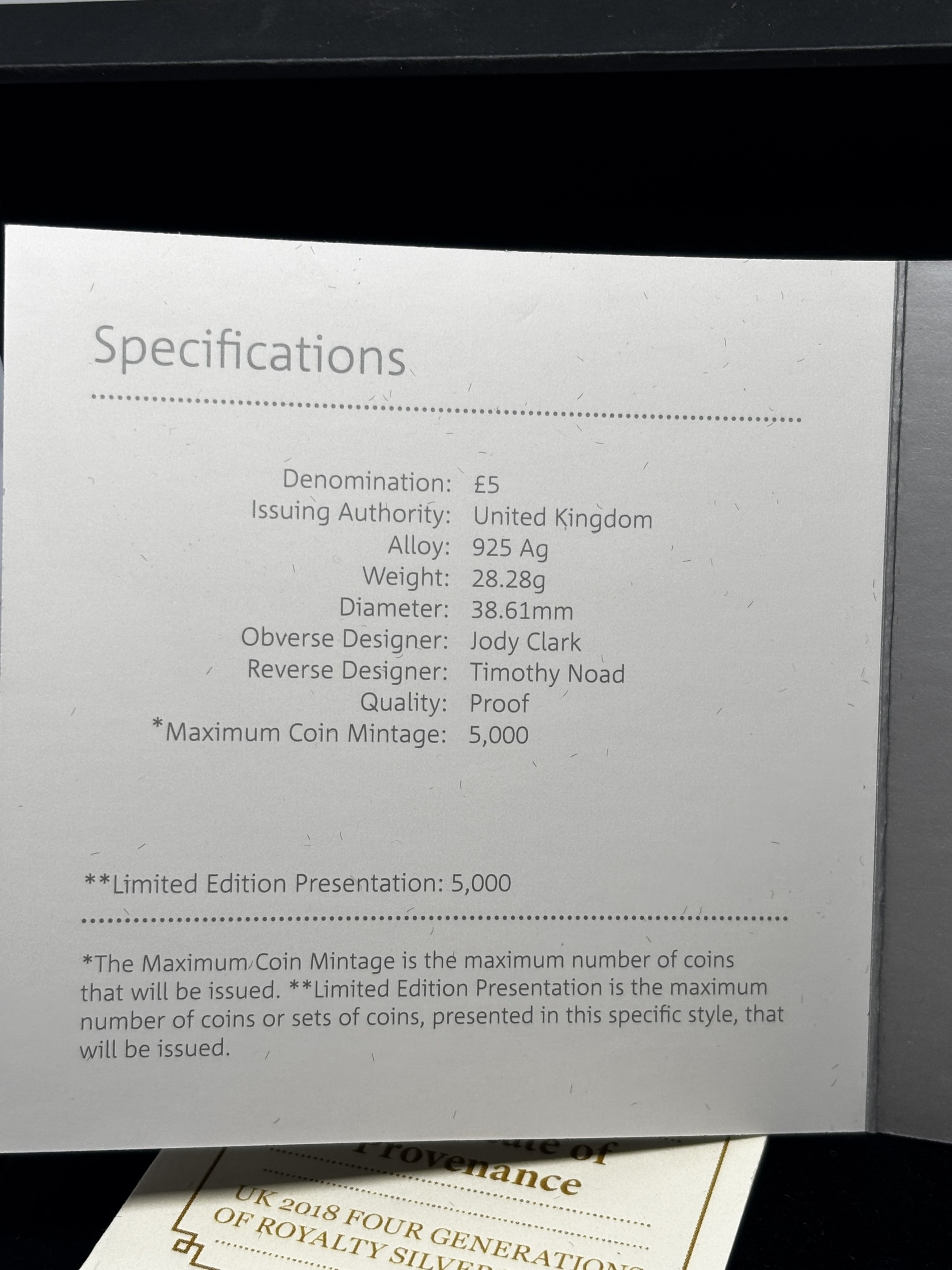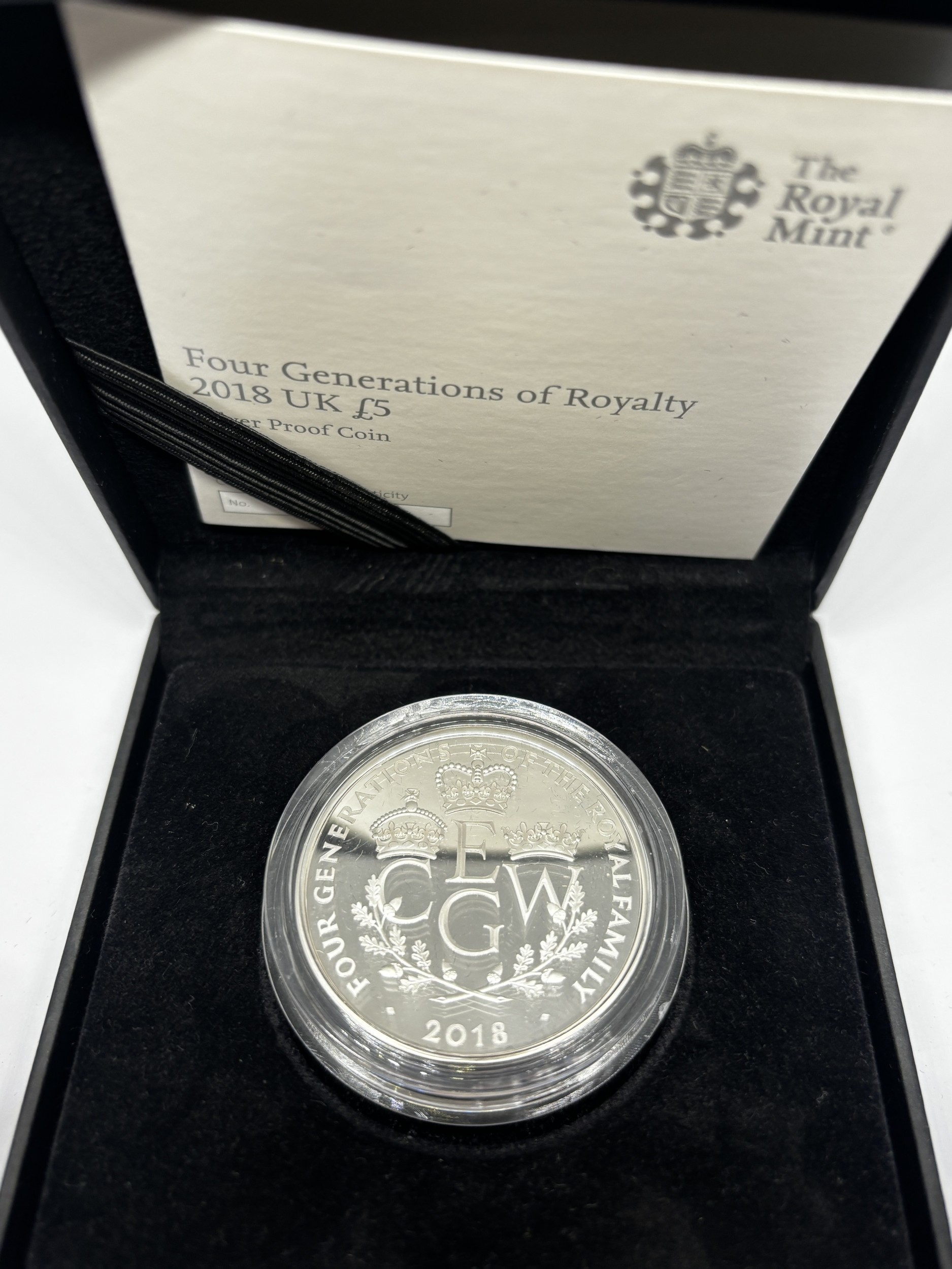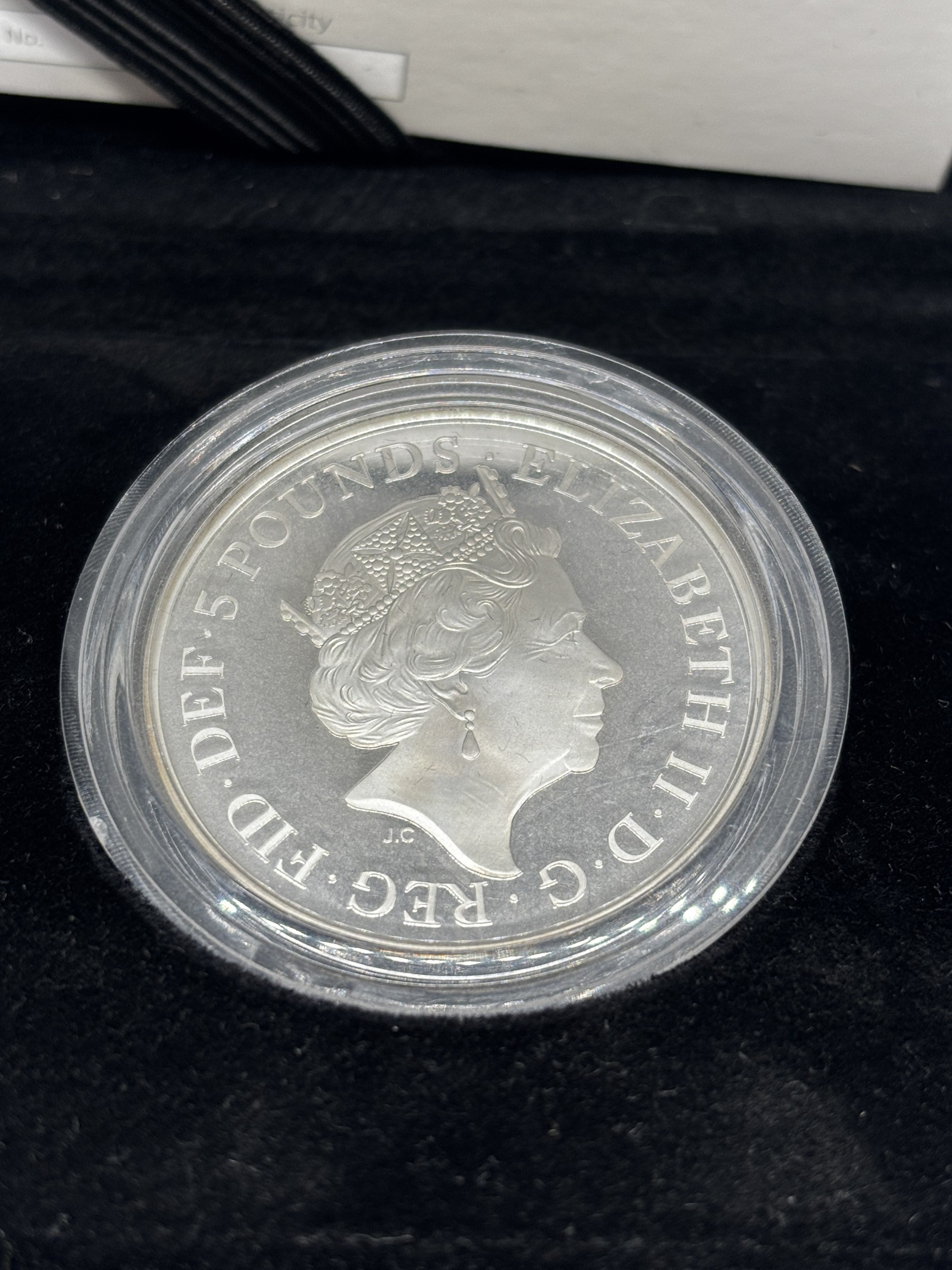 A BOXED PROOF ELIZABETH II FIVE POUND SILVER COIN