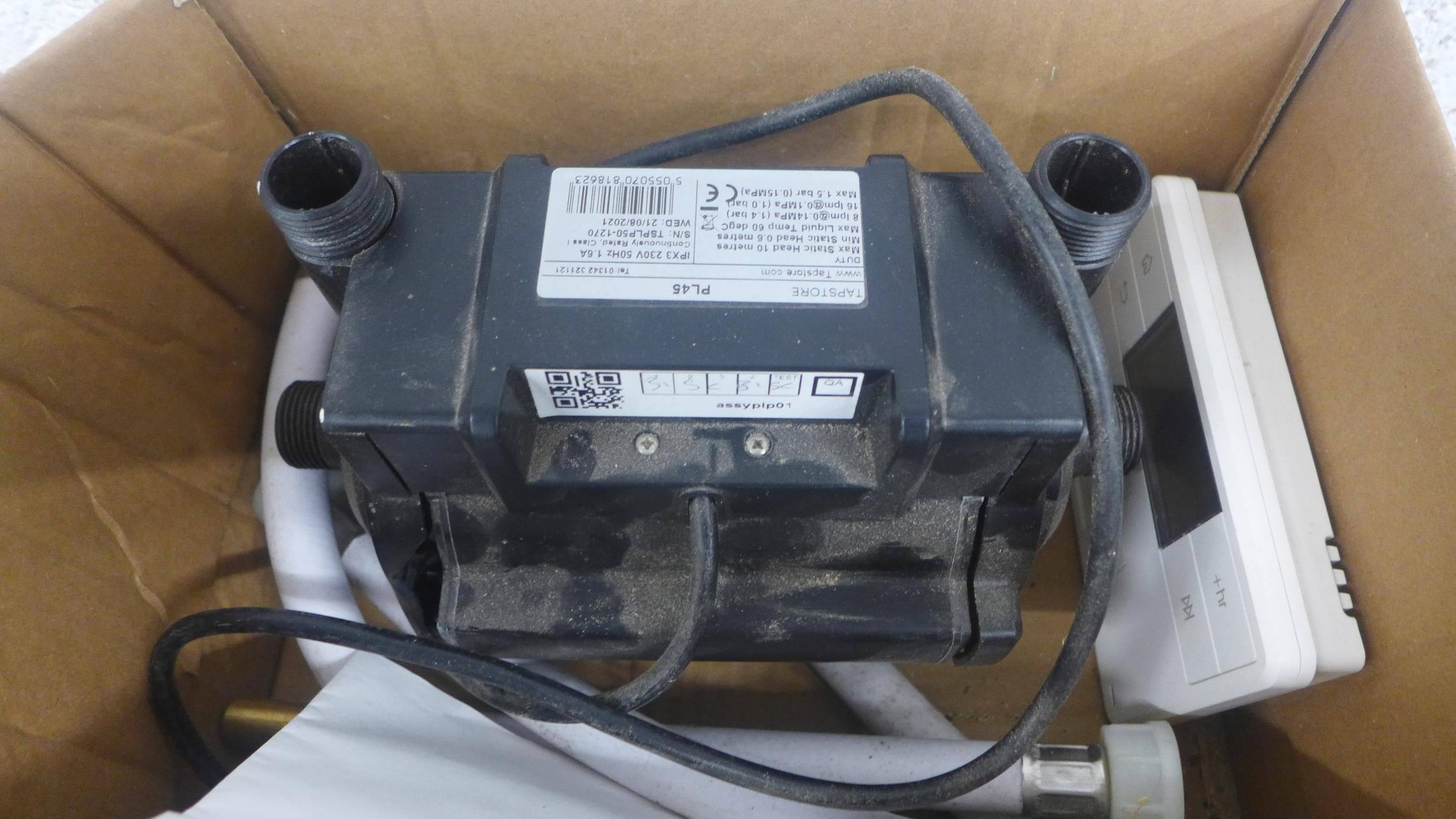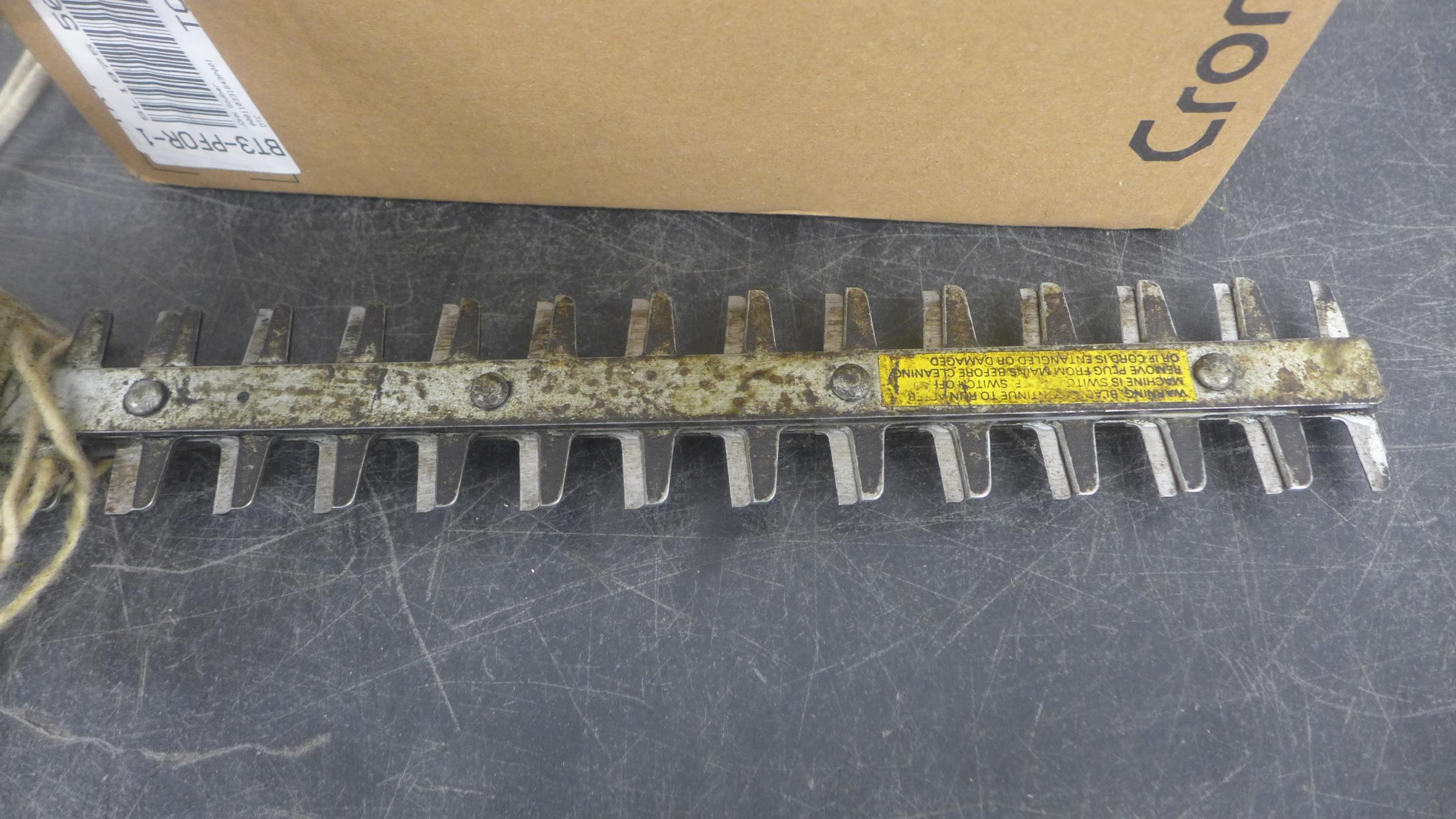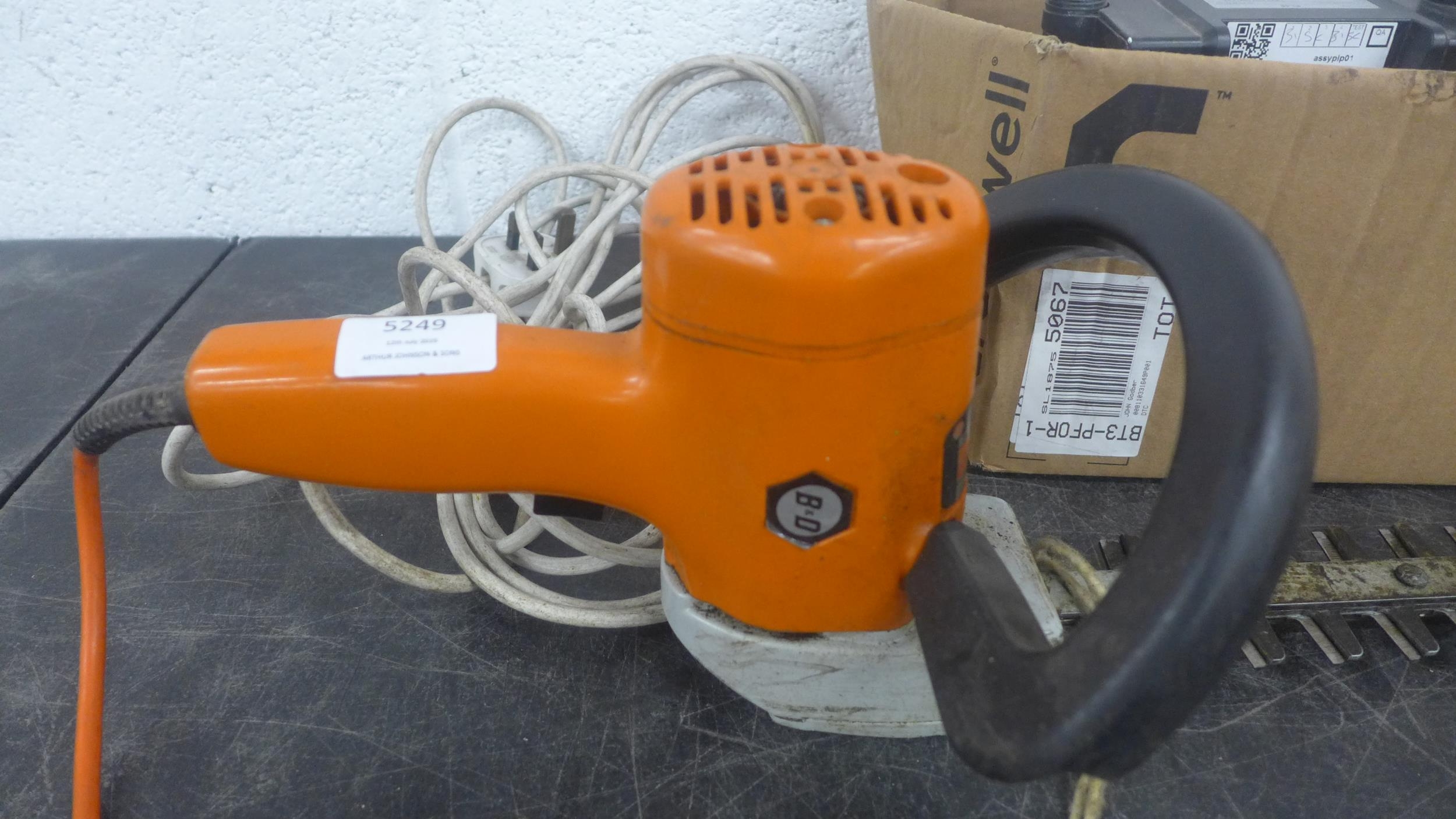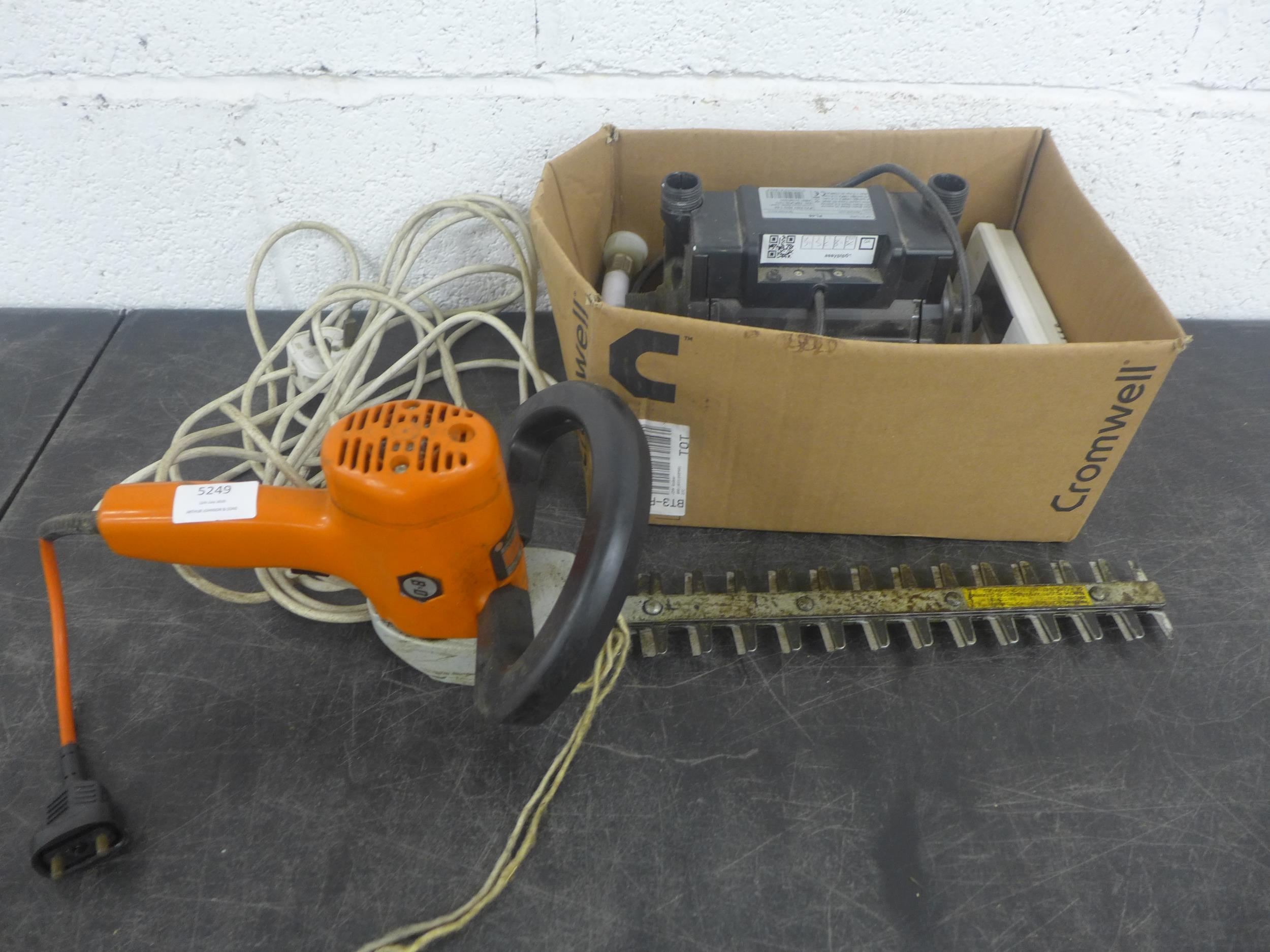 A Black and Decker DNJ450G mini electric hedge trimmer and a Turbo boast MK2 shower pump - in a box
