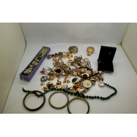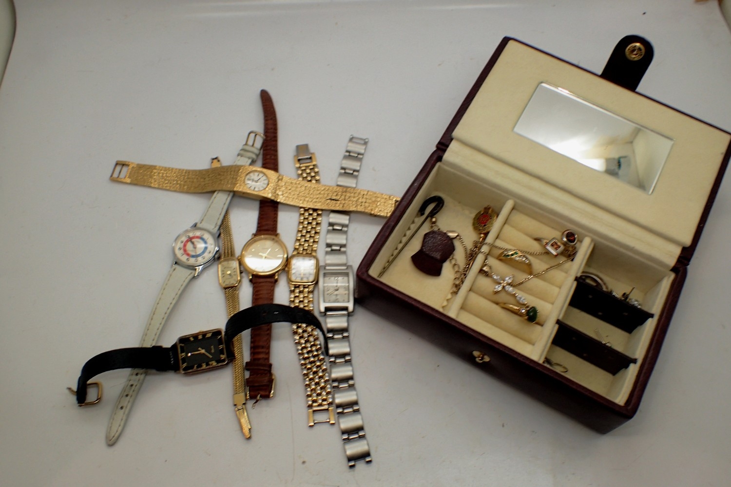 Jewellery box containing mixed costume jewellery and watches includes some silver. UK P&P Group 1 (£18+VAT for the first lot and £2+VAT for subsequent lots)