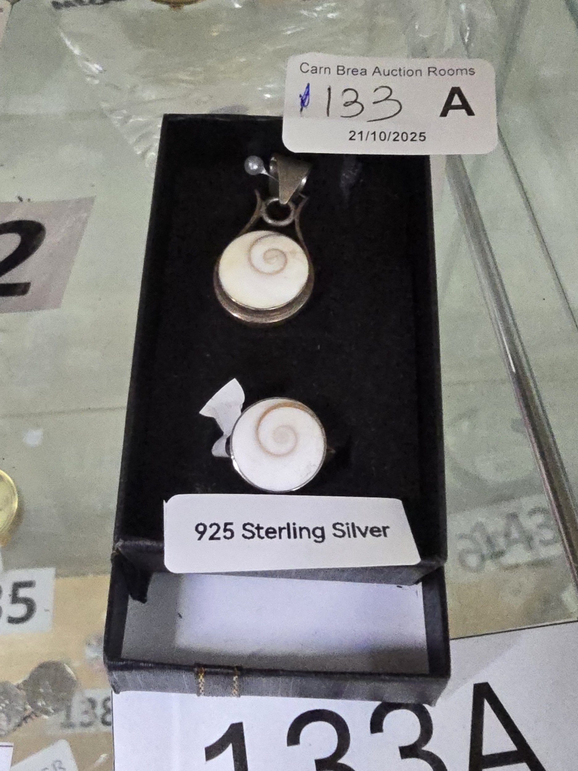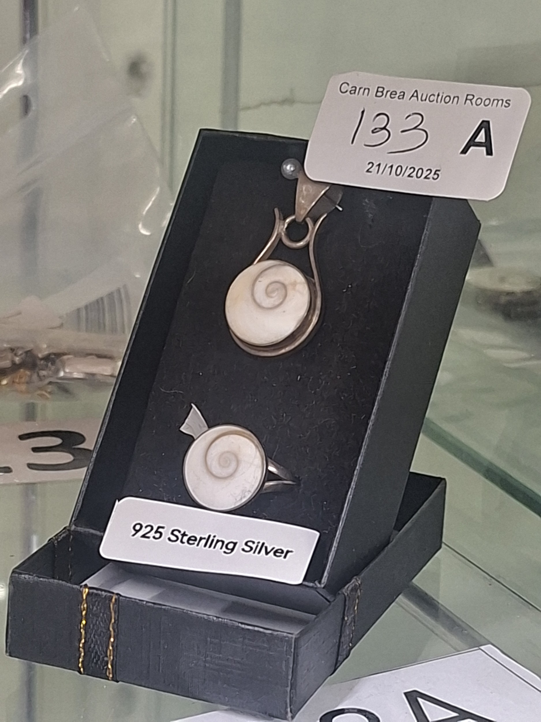 925 Silver (standard mark) Real Shell Helix Pendant & Ring, size N