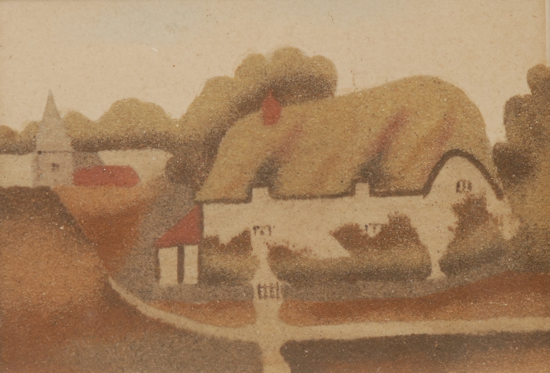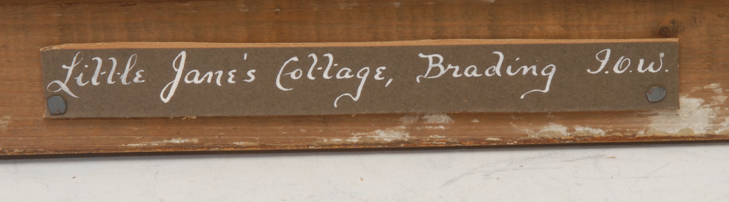 A 19th century Isle of Wight sand picture, Little Jane's Cottage, Brading, I.O.W, titled to verso, 12cm x 17cm, gilt frame