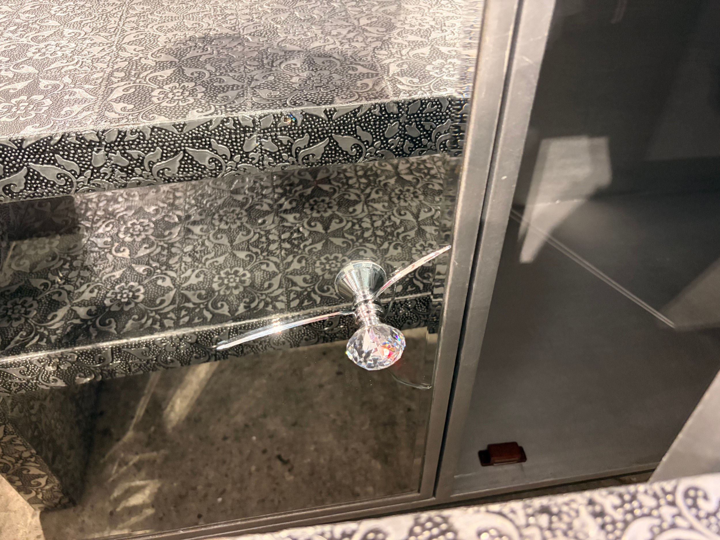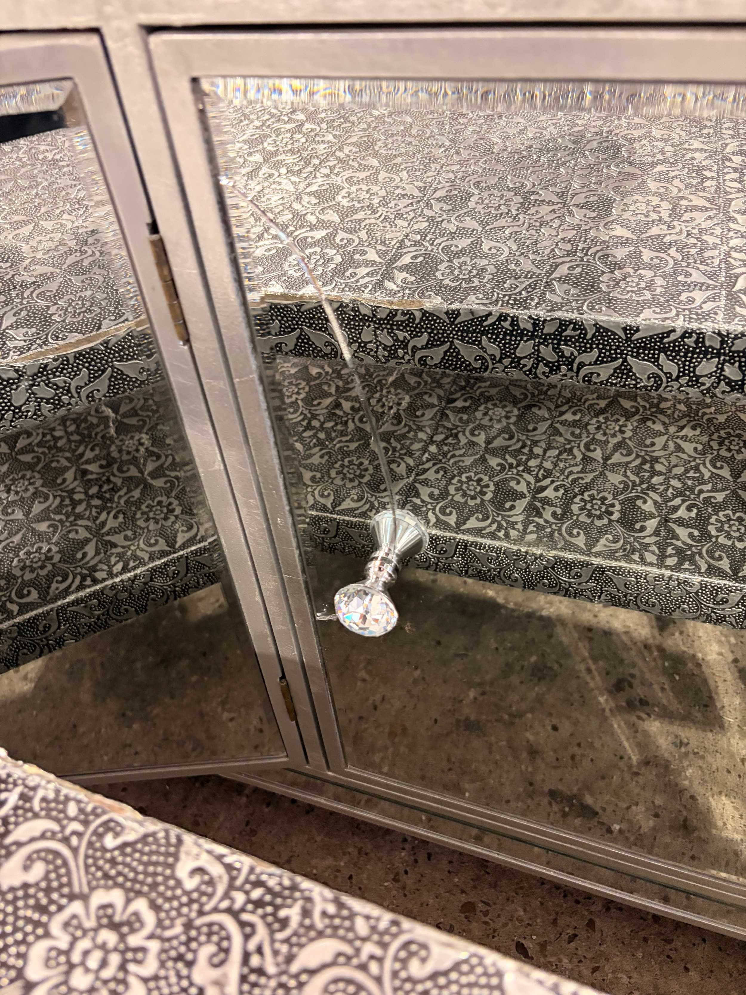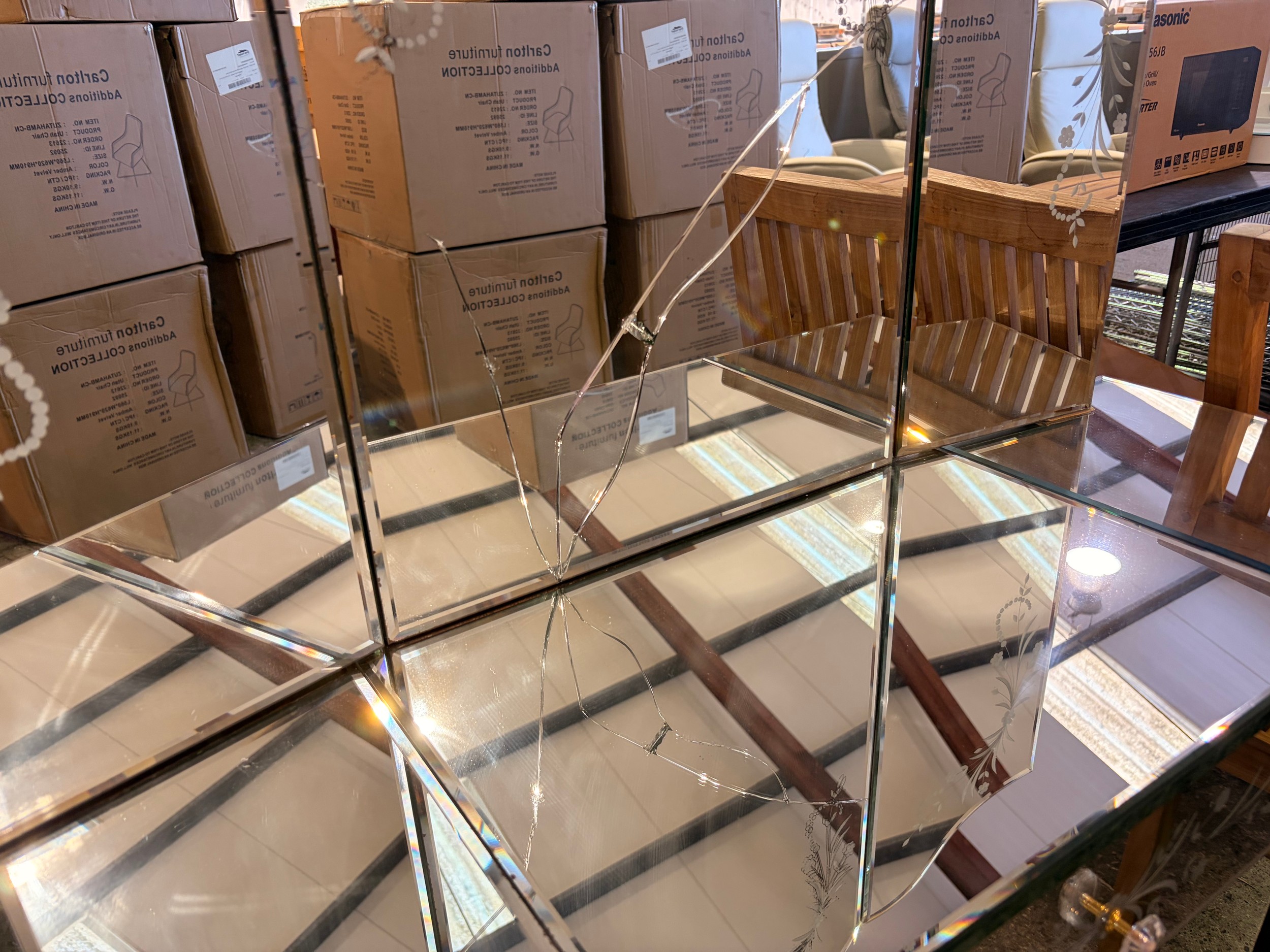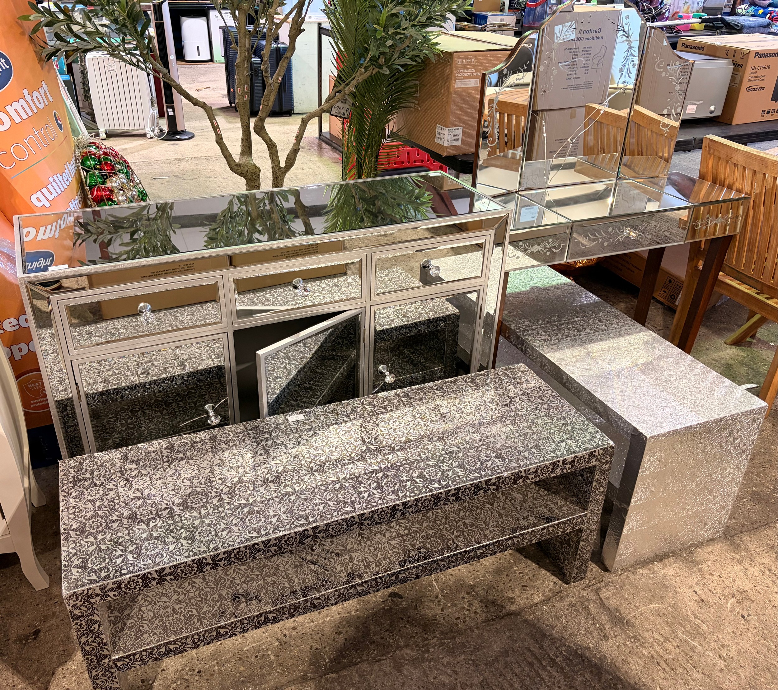Four mixed style items including, mirrored sideboard, dressing table and two media units