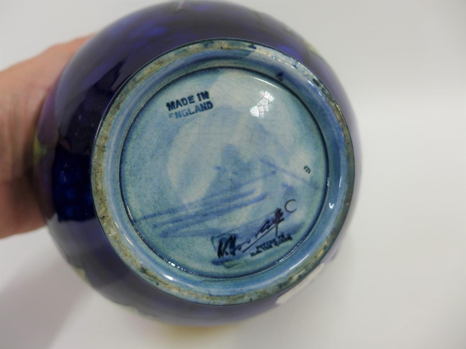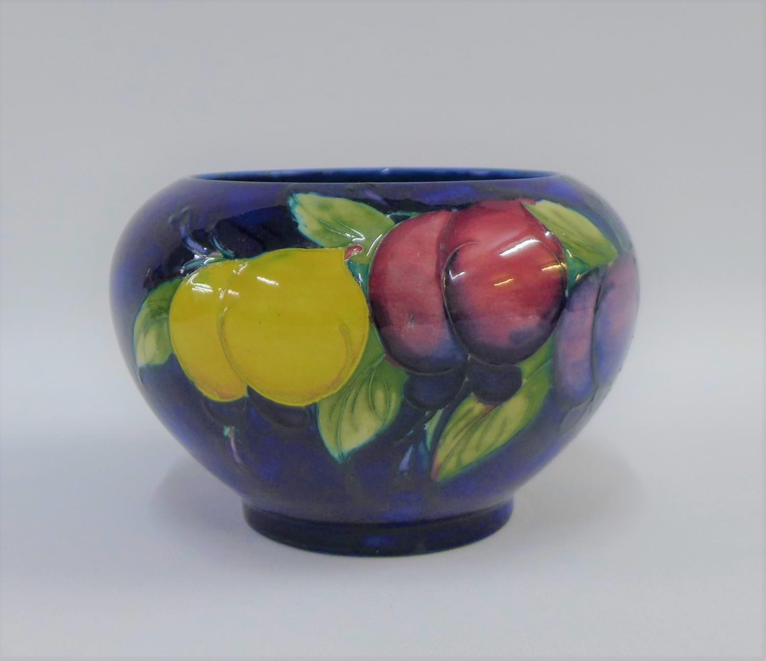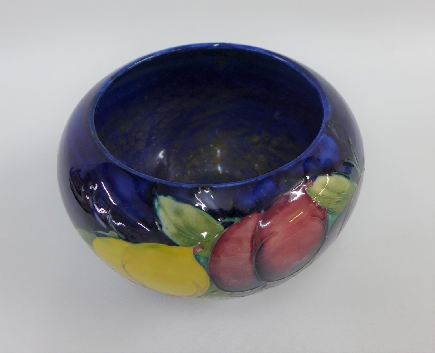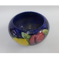 Moorcroft bowl the blue ground tubeline decorated with fruit, with facsimile signature to the base and impressed marks, 17cm diameter