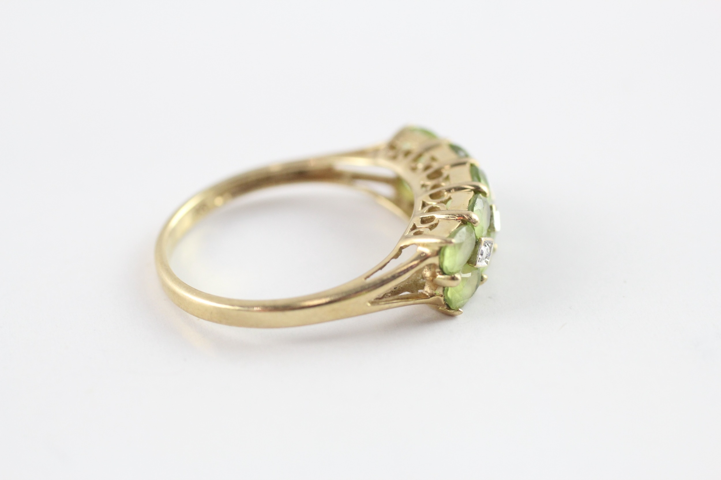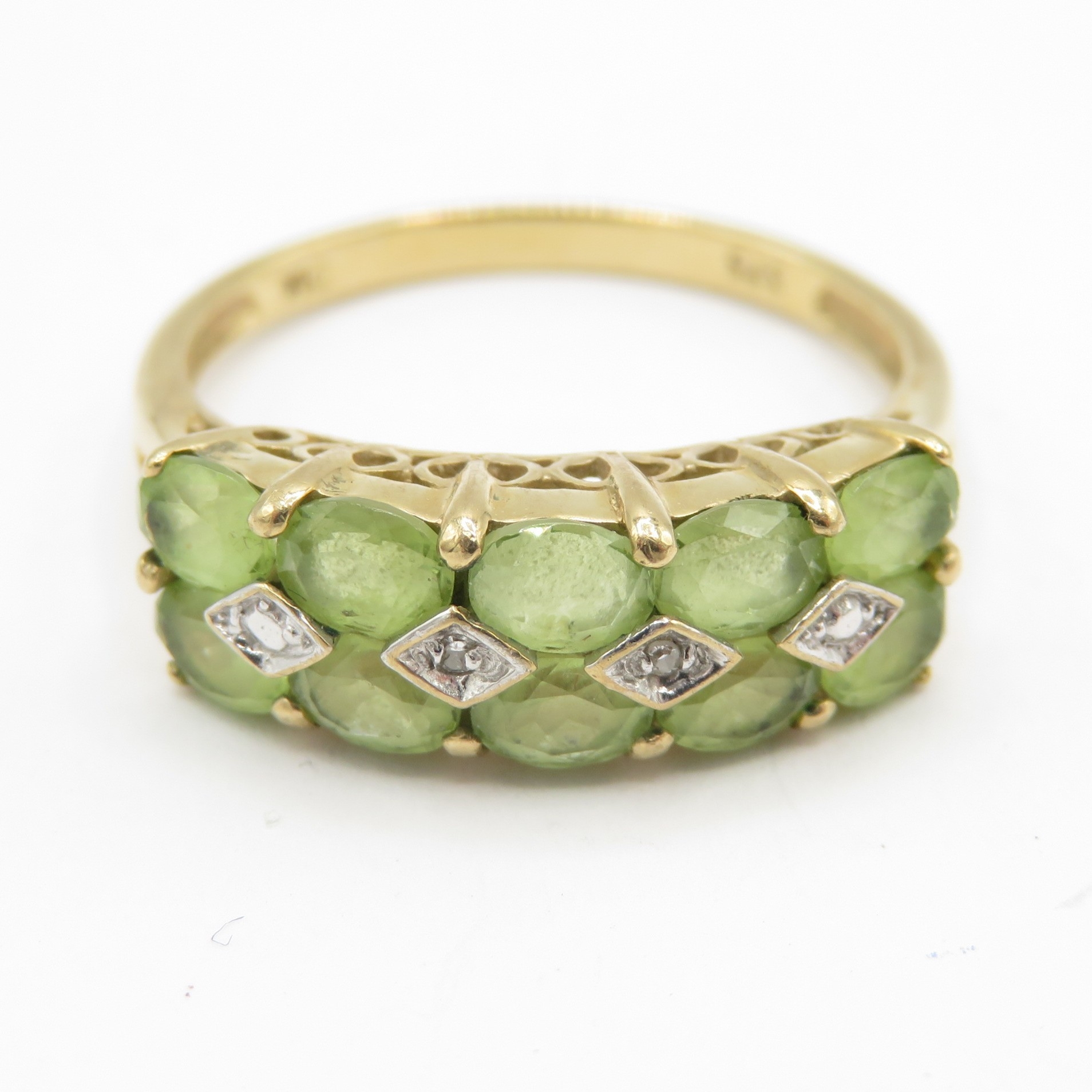 9ct gold diamond accented peridot band ring (2.5g) Size P