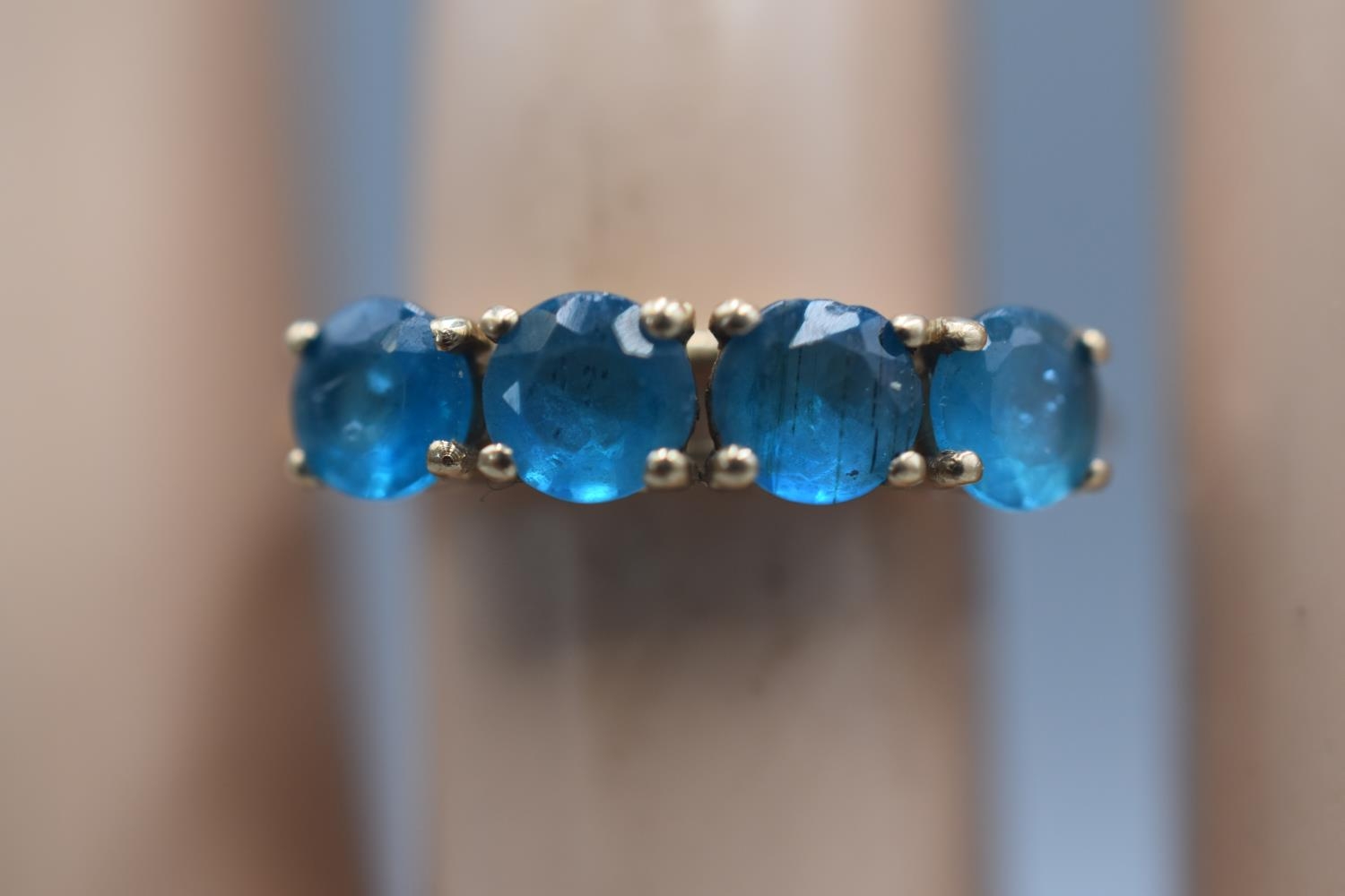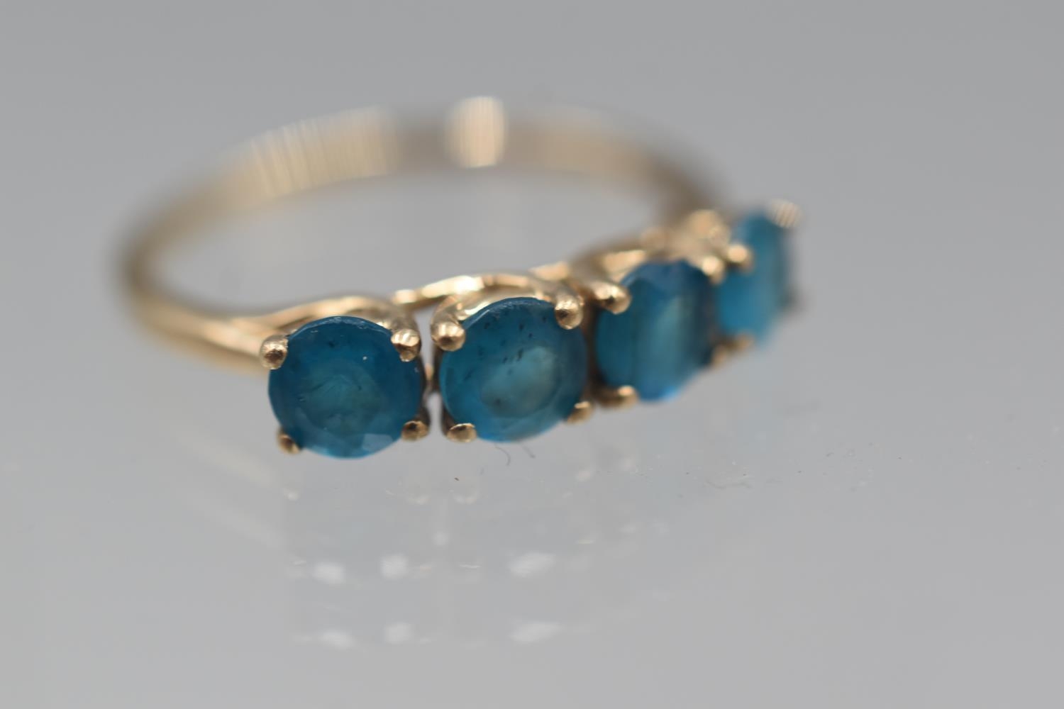 Hallmarked Birmingham 375 Gold Ring with 4 Neon Apatite Stones Presentaion Box and Certificate