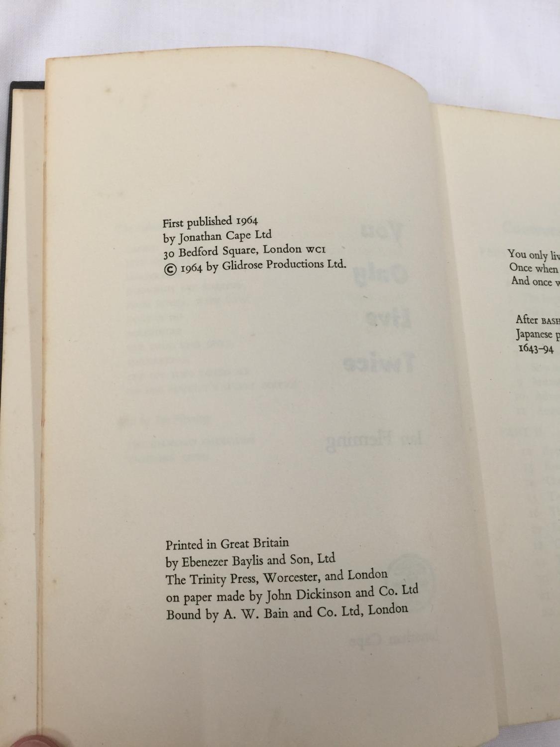 A FIRST EDITION JAMES BOND NOVEL - YOU ONLY LIVE TWICE BY IAN FLEMING, HARDBACK NO DUST JACKET - PUBLISHED 1964 BY JONATHAN CAPE.