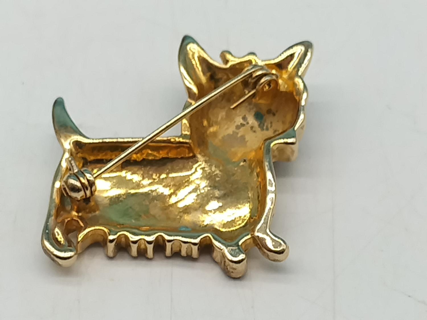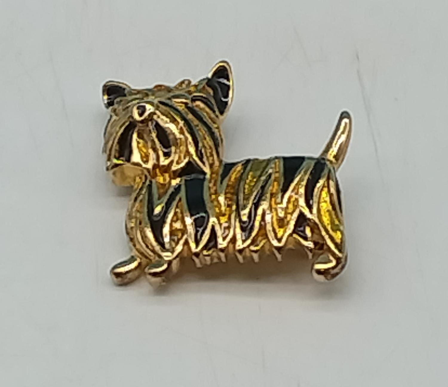 Yellow Metal and Enamel Terrier Dog Brooch.