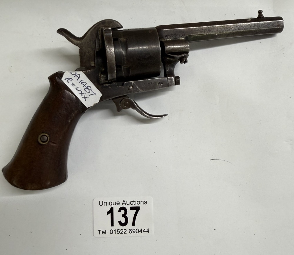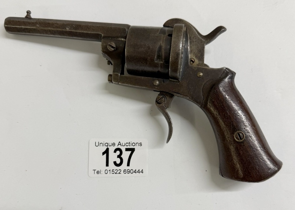 A late 19th/early 20th century Belgian pinfire revolver (hammer action needs attention)