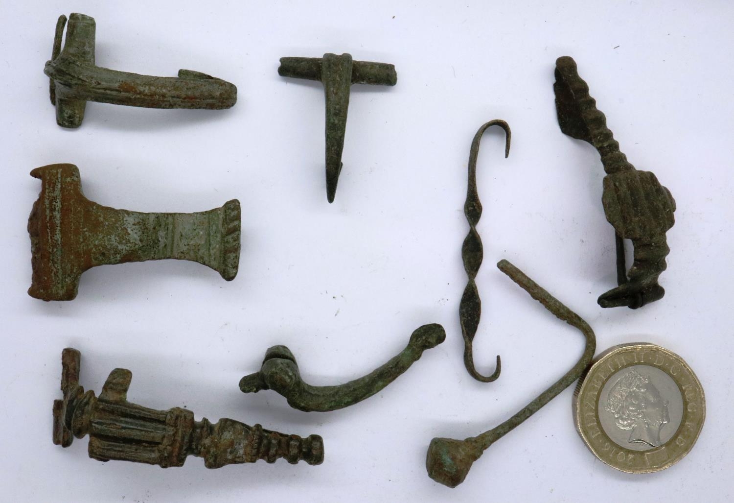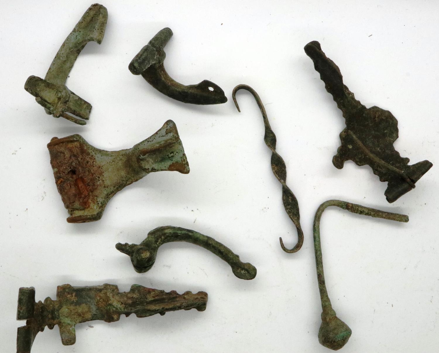 3rd century Roman bronze fibula and dress fixtures. P&P Group 0 (£5+VAT for the first lot and £1+VAT for subsequent lots)
