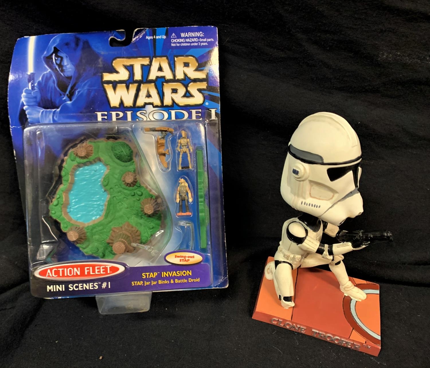 STAR WARS CARDS INC CHARACTERS 'CLONE TROOPER' & STAR WARS EPISODE 1, ACTION FLEET, MINI SCENES #1 STAP INVASION & STAR TREK TIN (USB CABLE INSIDE)