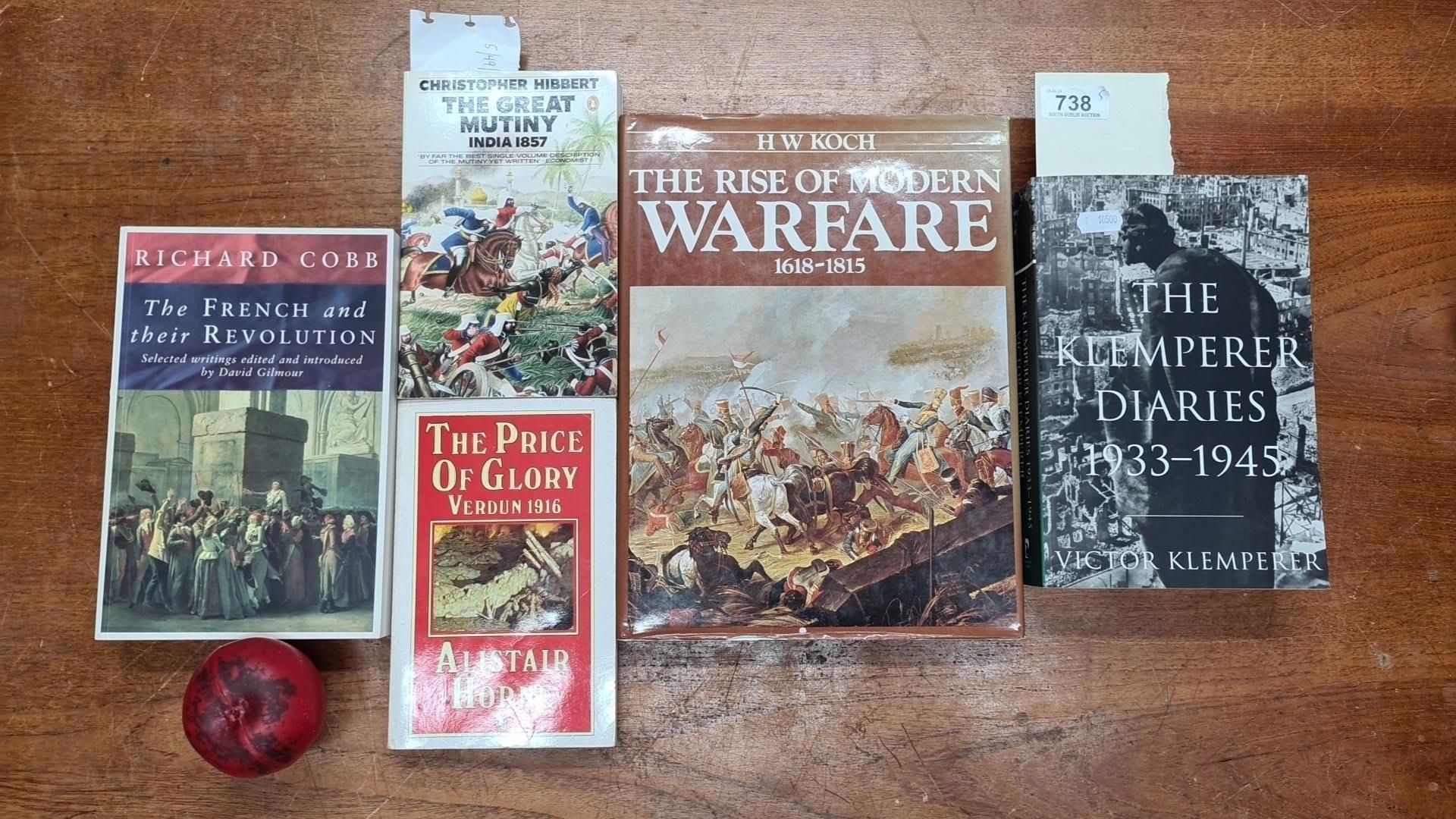 Four works on historical themes, including two focused on warfare, one on the French Revolution, and a personal diaries compilation, various publishers.