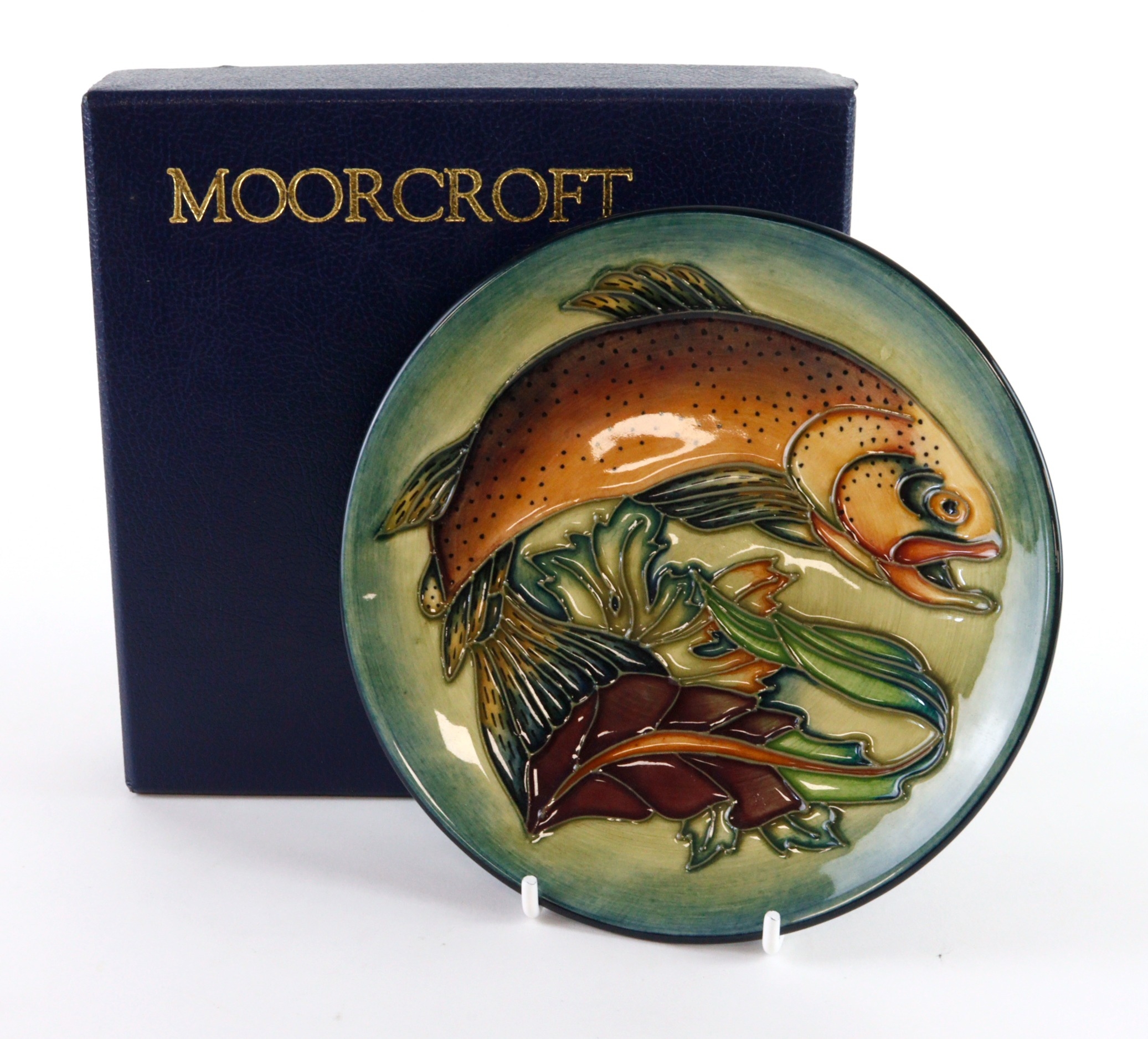 Moorcroft 'Trout' pattern plate, dated 1998, makers marks to base, diameter 16cm approx., contained in a Moorcroft box