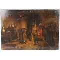 FOLLOWER OF TOBIAS EDWARD ROSENTHAL Monastery interior with a young woman before nuns and monks oil on canvas (a/f) unframed 63 x 91cm