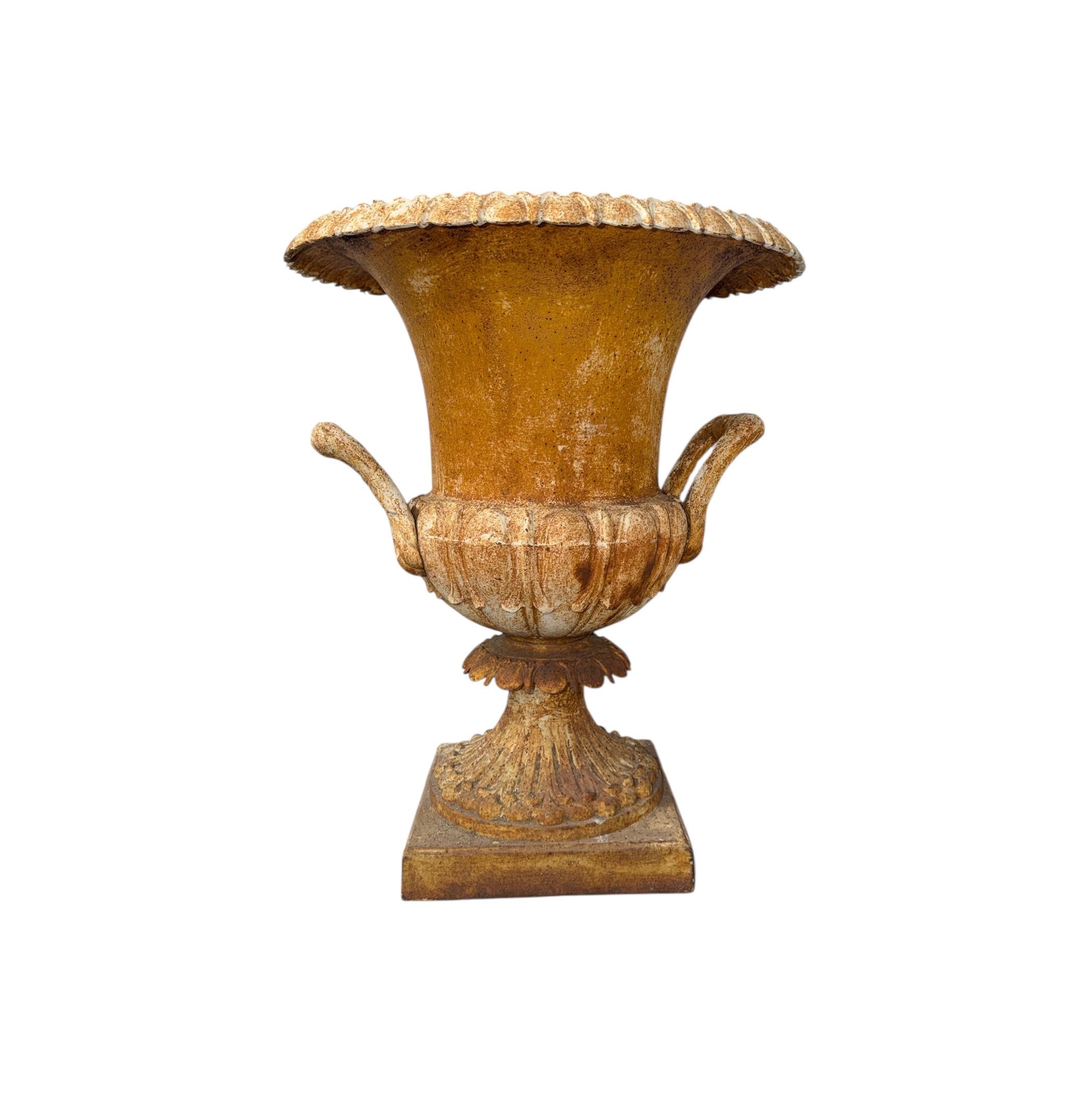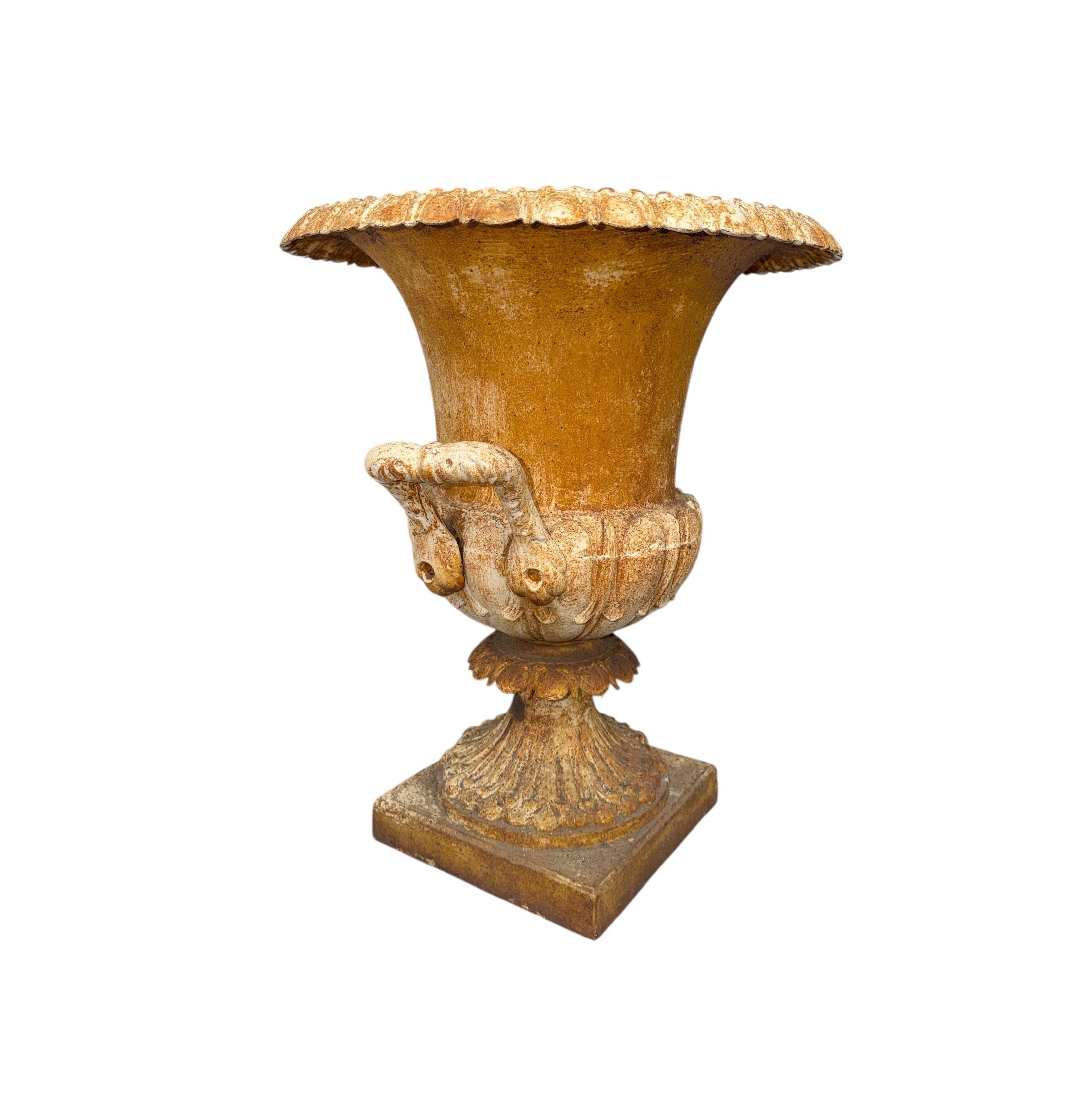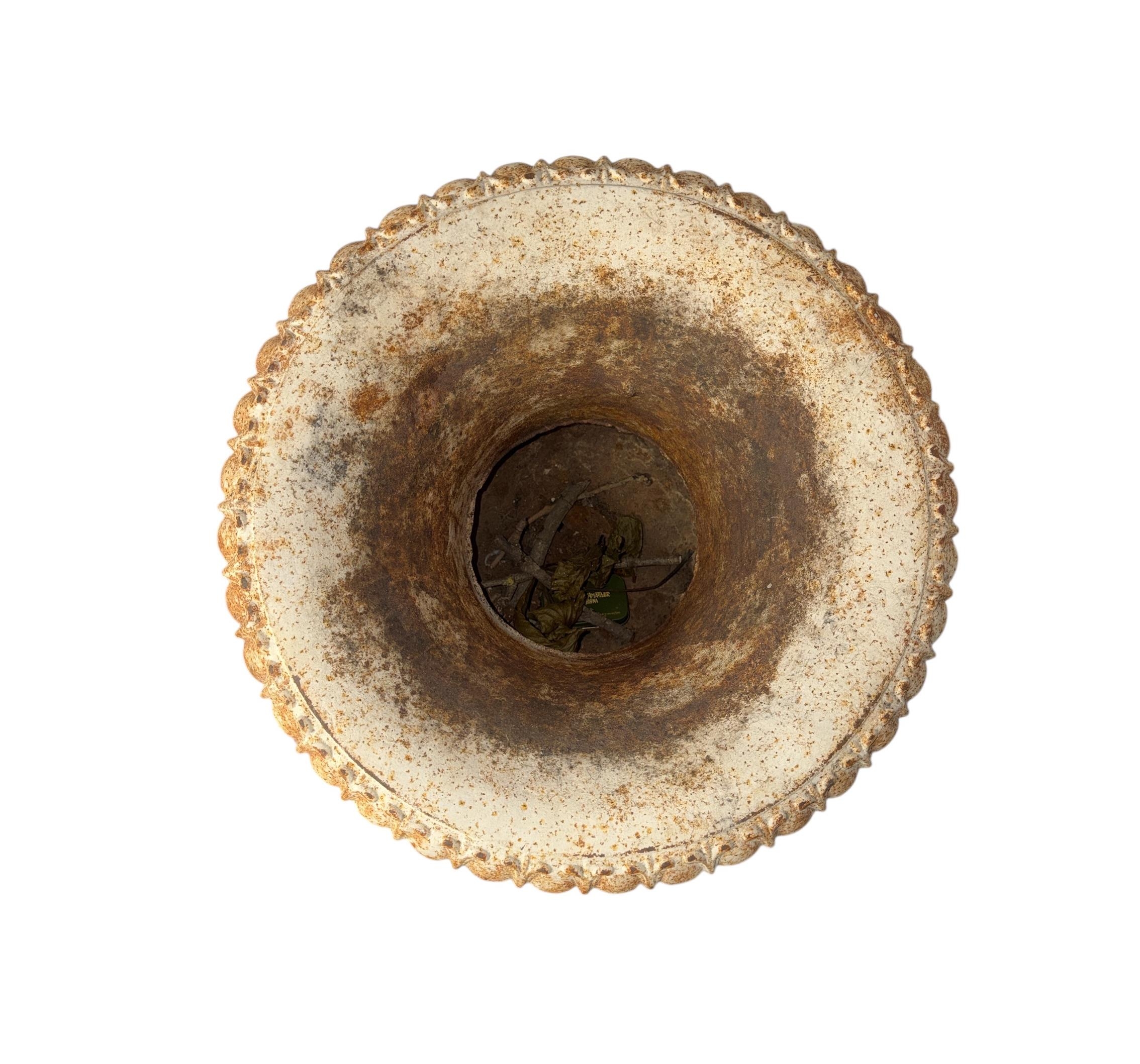 A large Campana cast iron twin-handled urn, 54cms diameter.