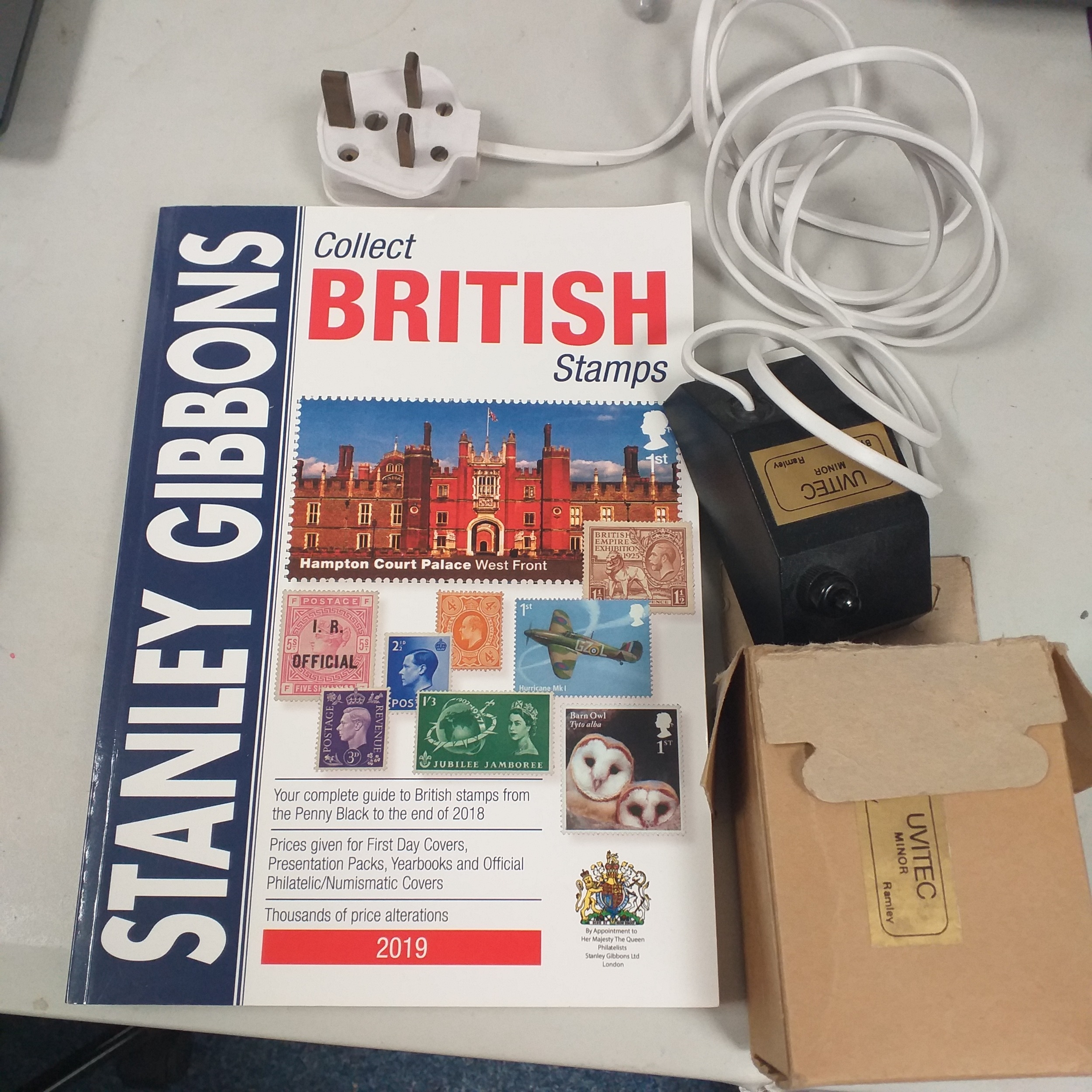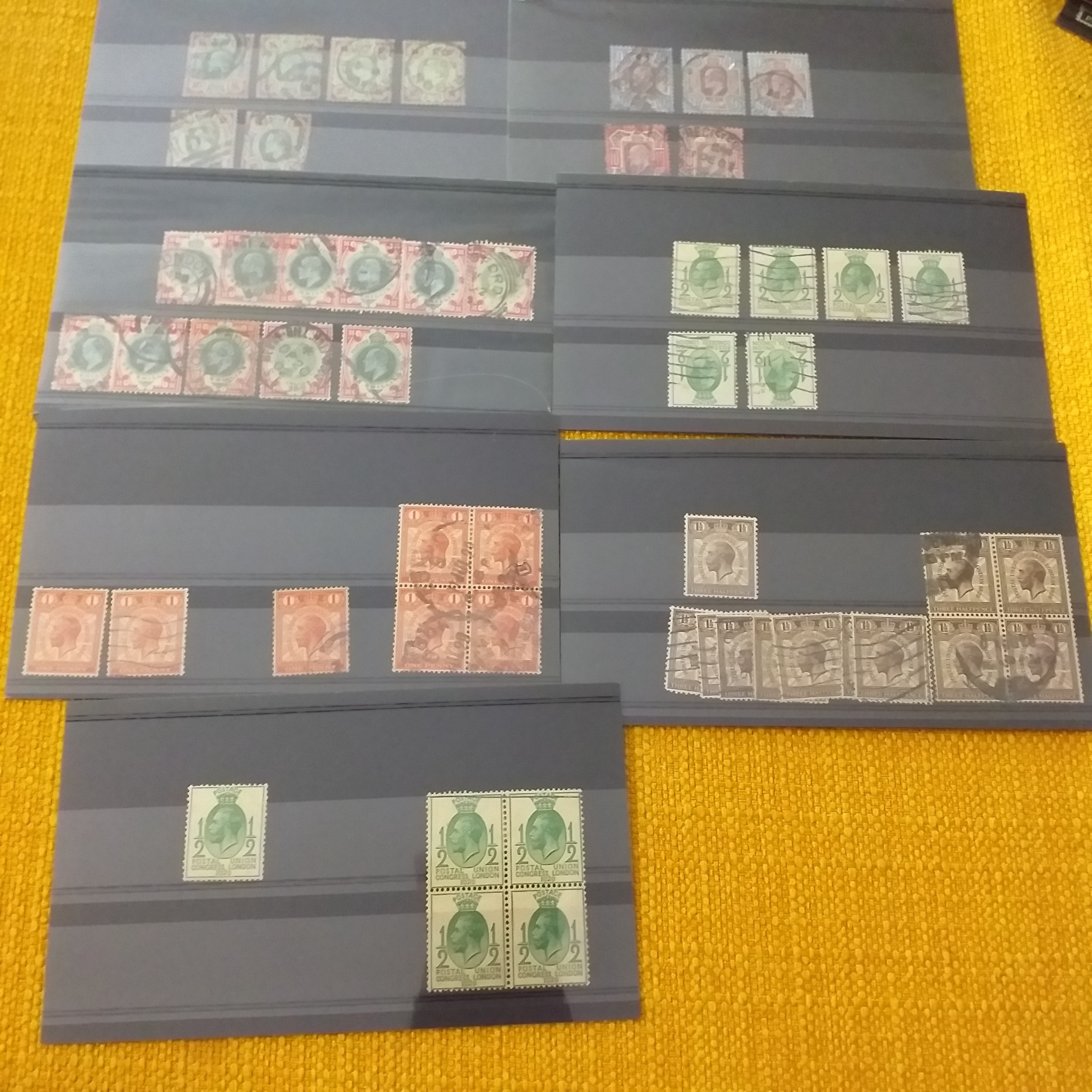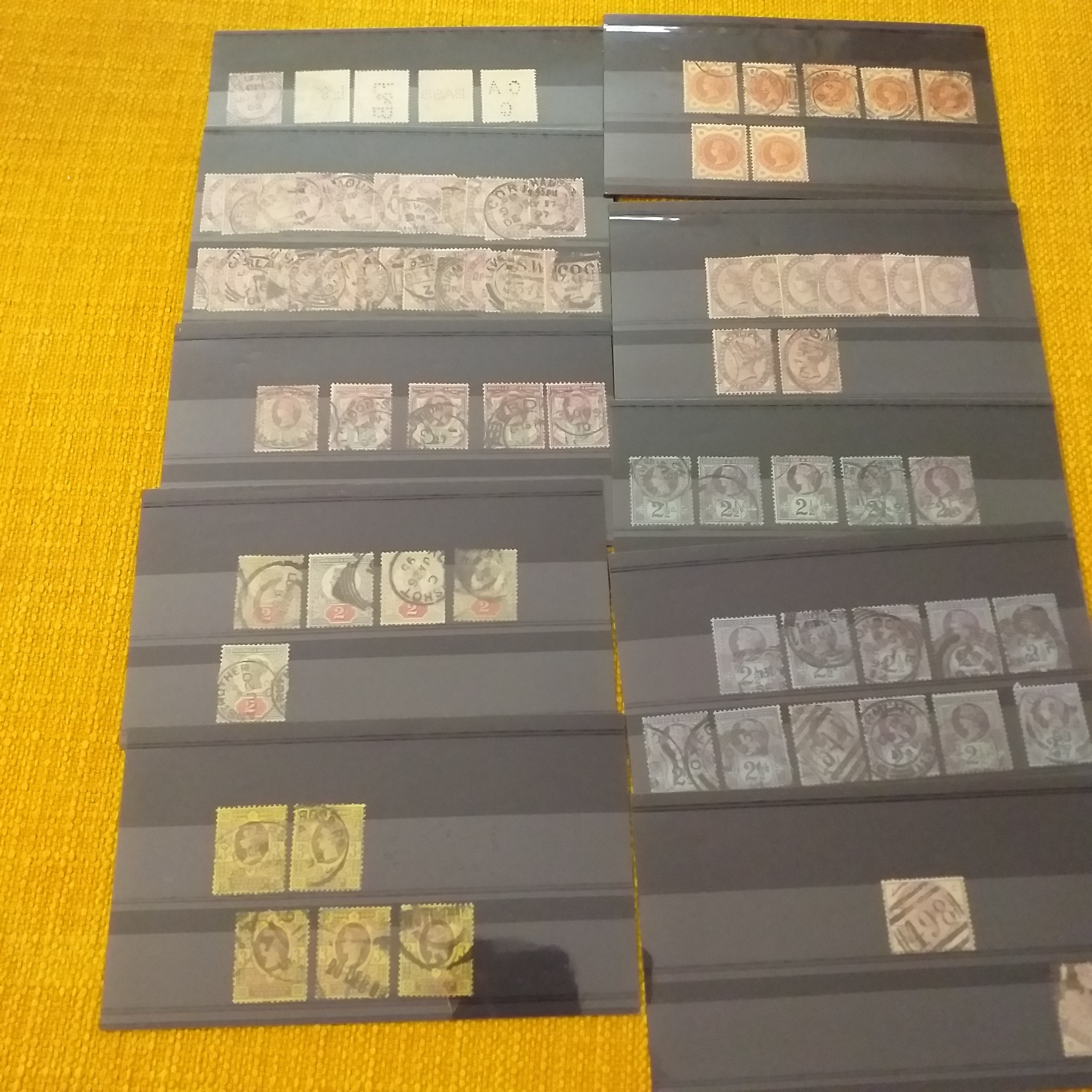 Ice cream container containing approximately 150+ 2 row stock cards of early GB QV to KEVIII, some mint. Much duplication but a good representation of QV surface printed issues mostly in very good to fine condition, huge range of postmarks, shades, printings and plate No's. Ideal for the specialist.Uvitec UV Light (working) and 2019 Collect British Stamps catalogue (like new)