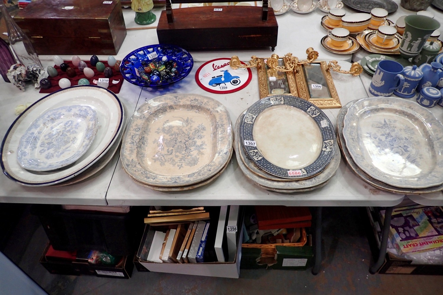 Twelve blue and white charger plates. Not available for in-house P&P
