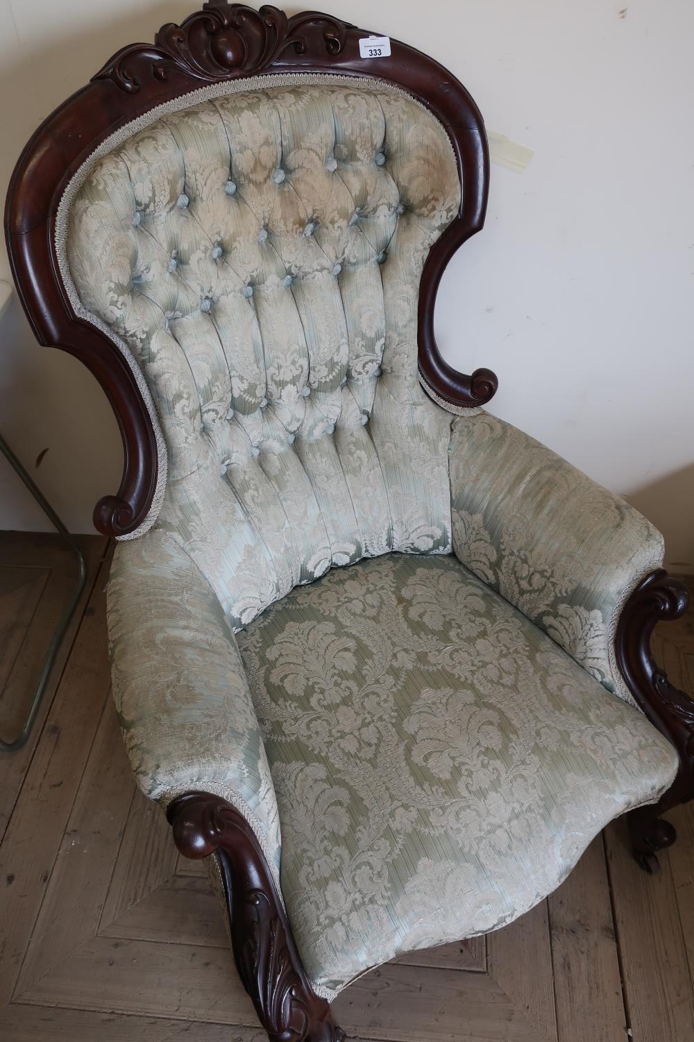 Victorian mahogany framed armchair with deep buttoned uphols...