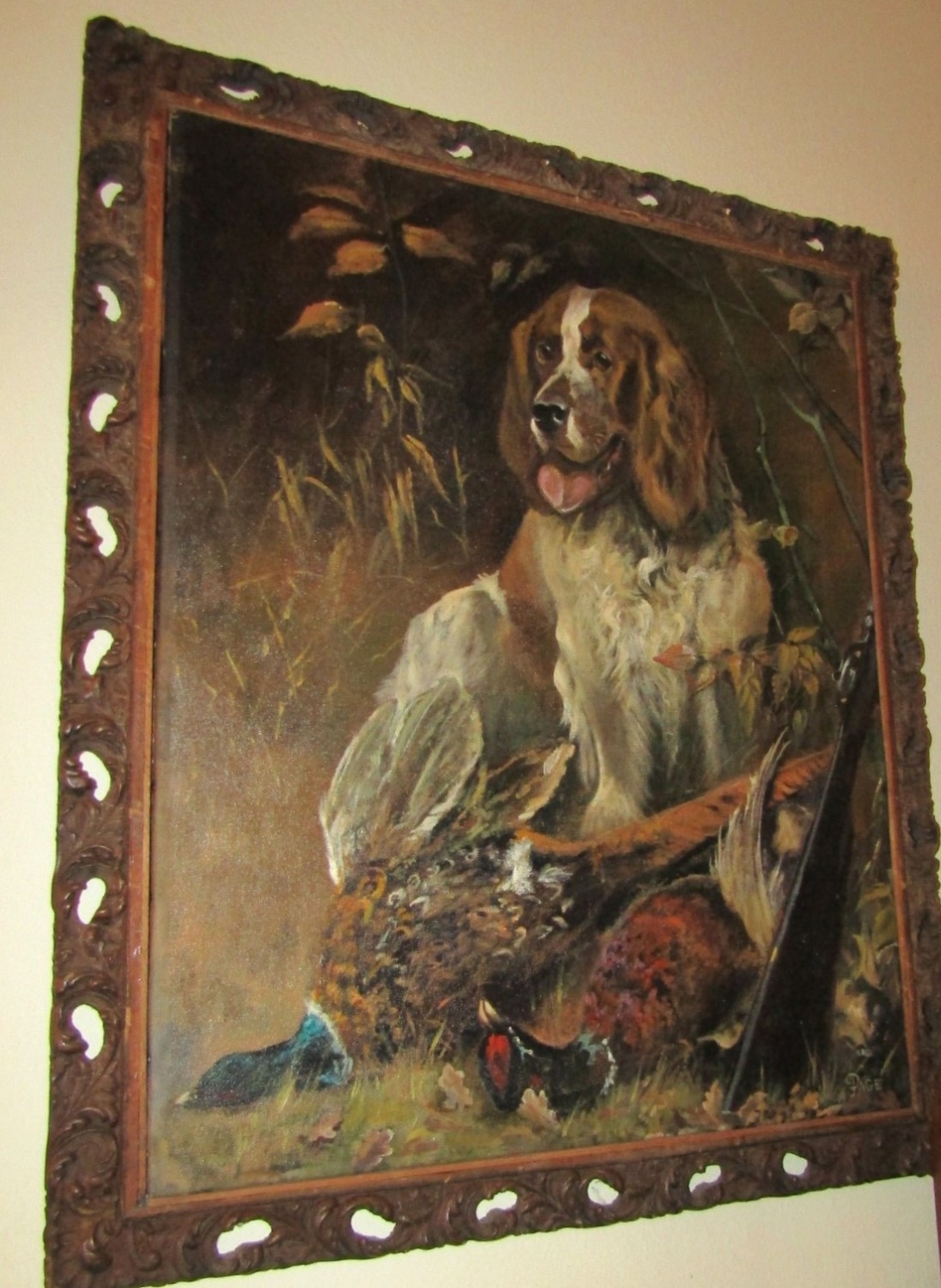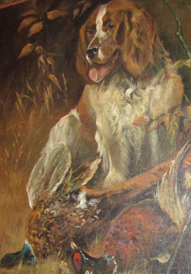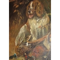 Dog with Game Birds Oil on Canvas Approximately 30 Inches High x 25 Inches Wide Signed Lower Right