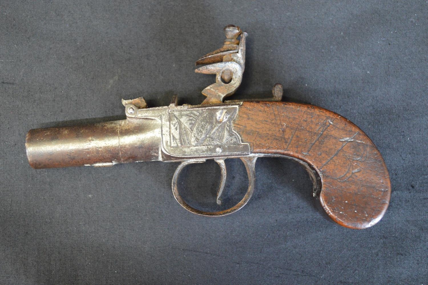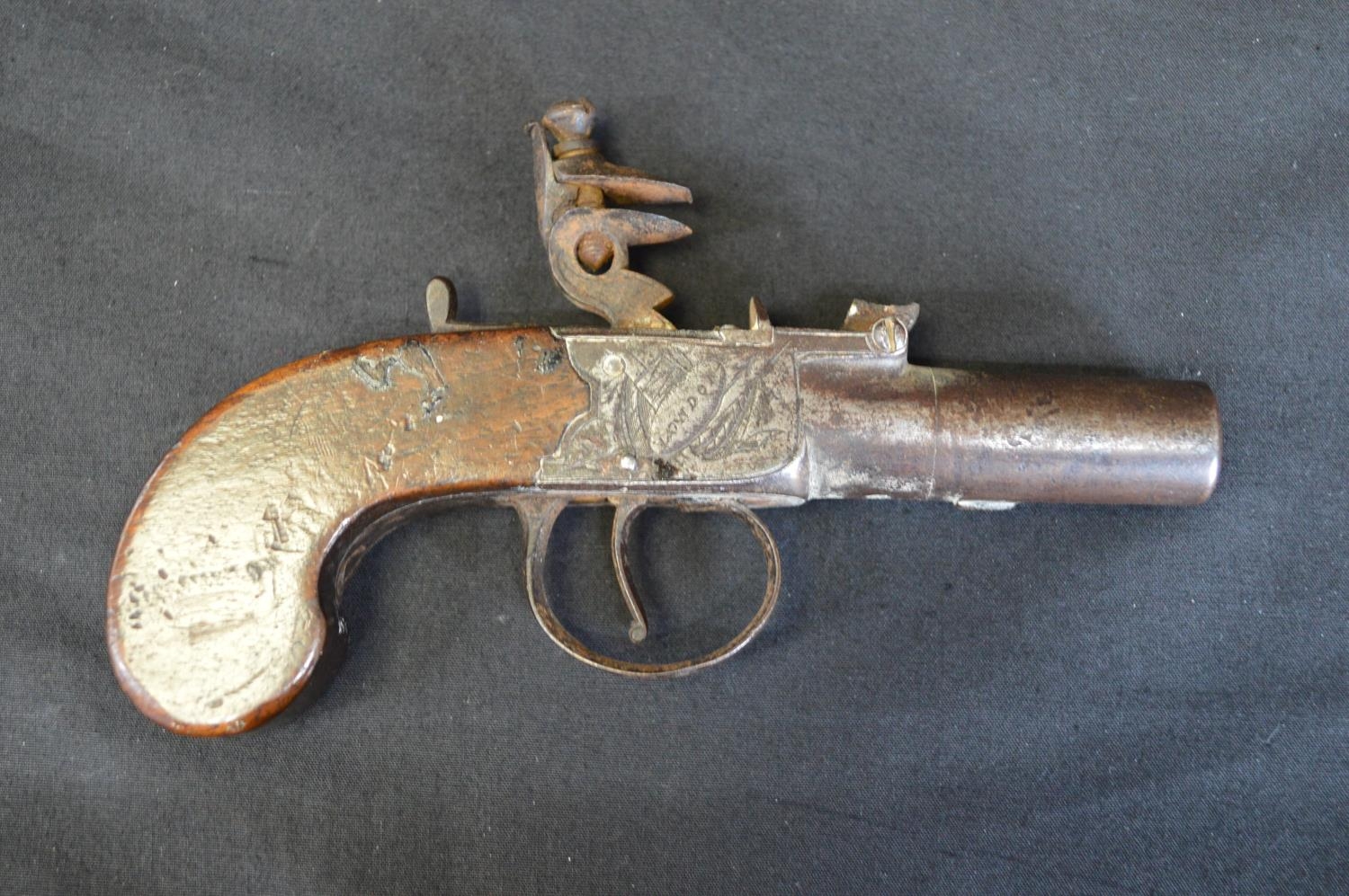H Nock flint box lock pistol - 15.5cm long