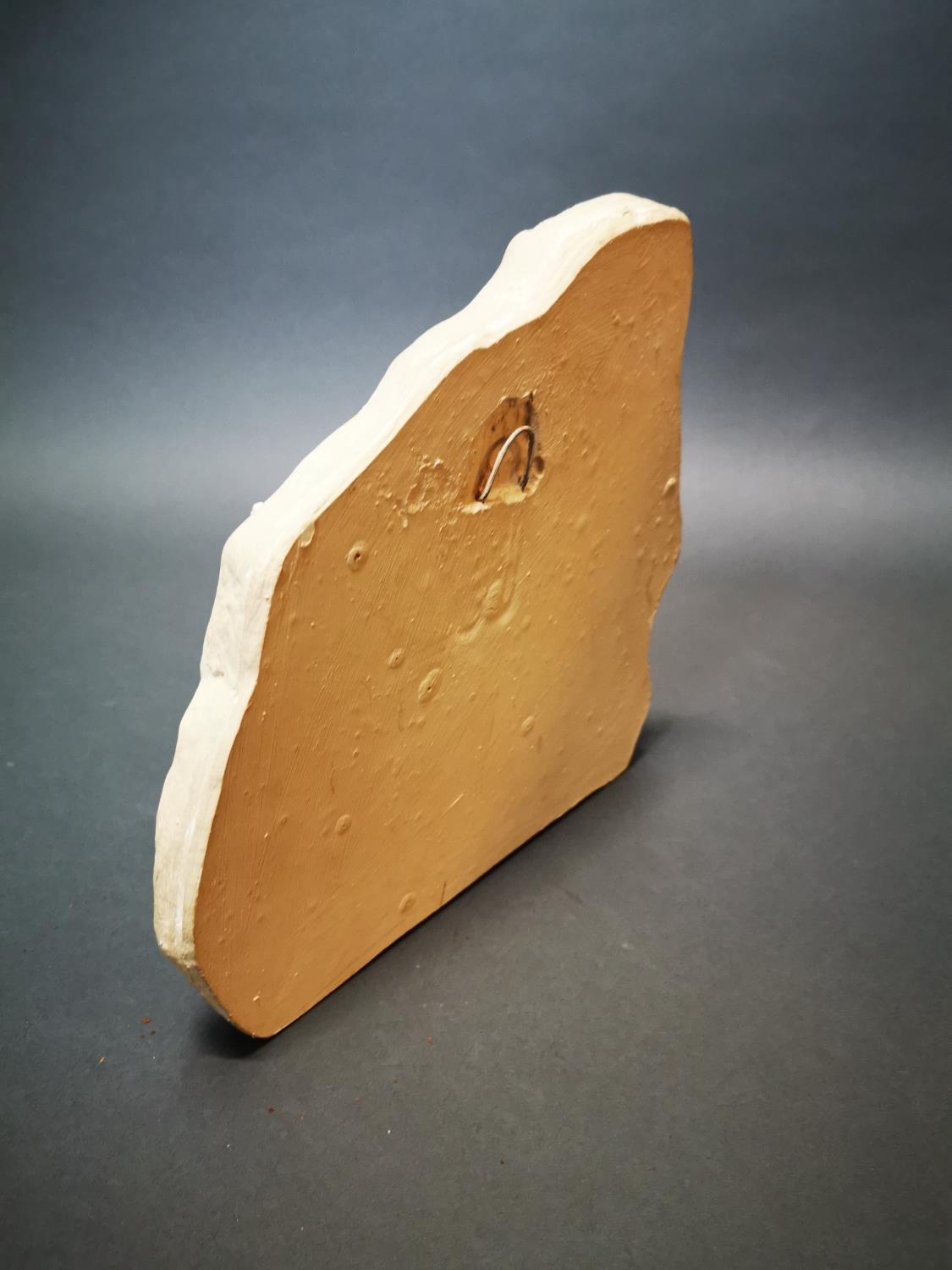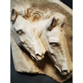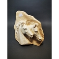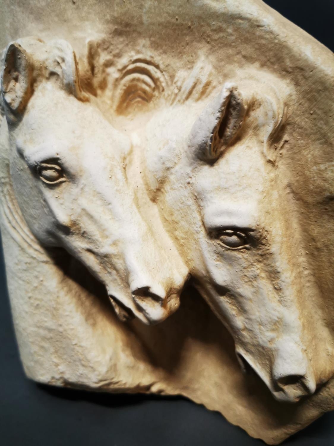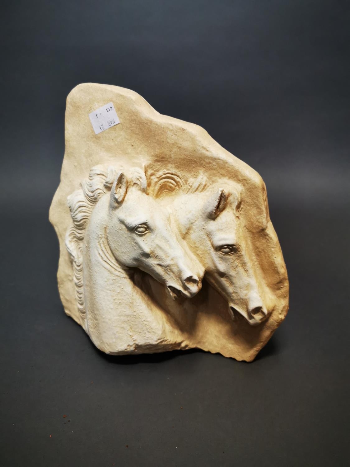 Plaster relief depicting horses {27 cm H x 26 cm W}.