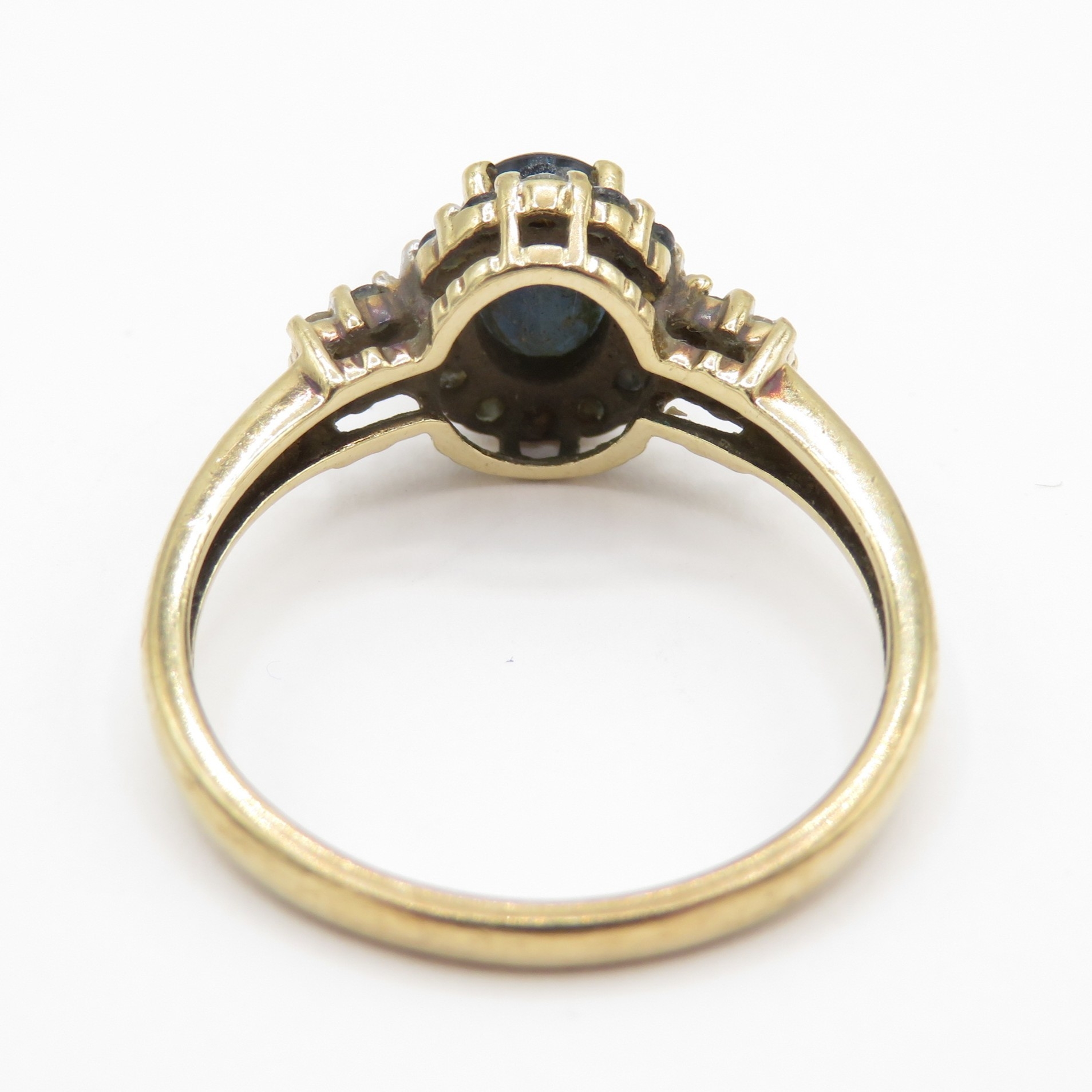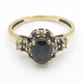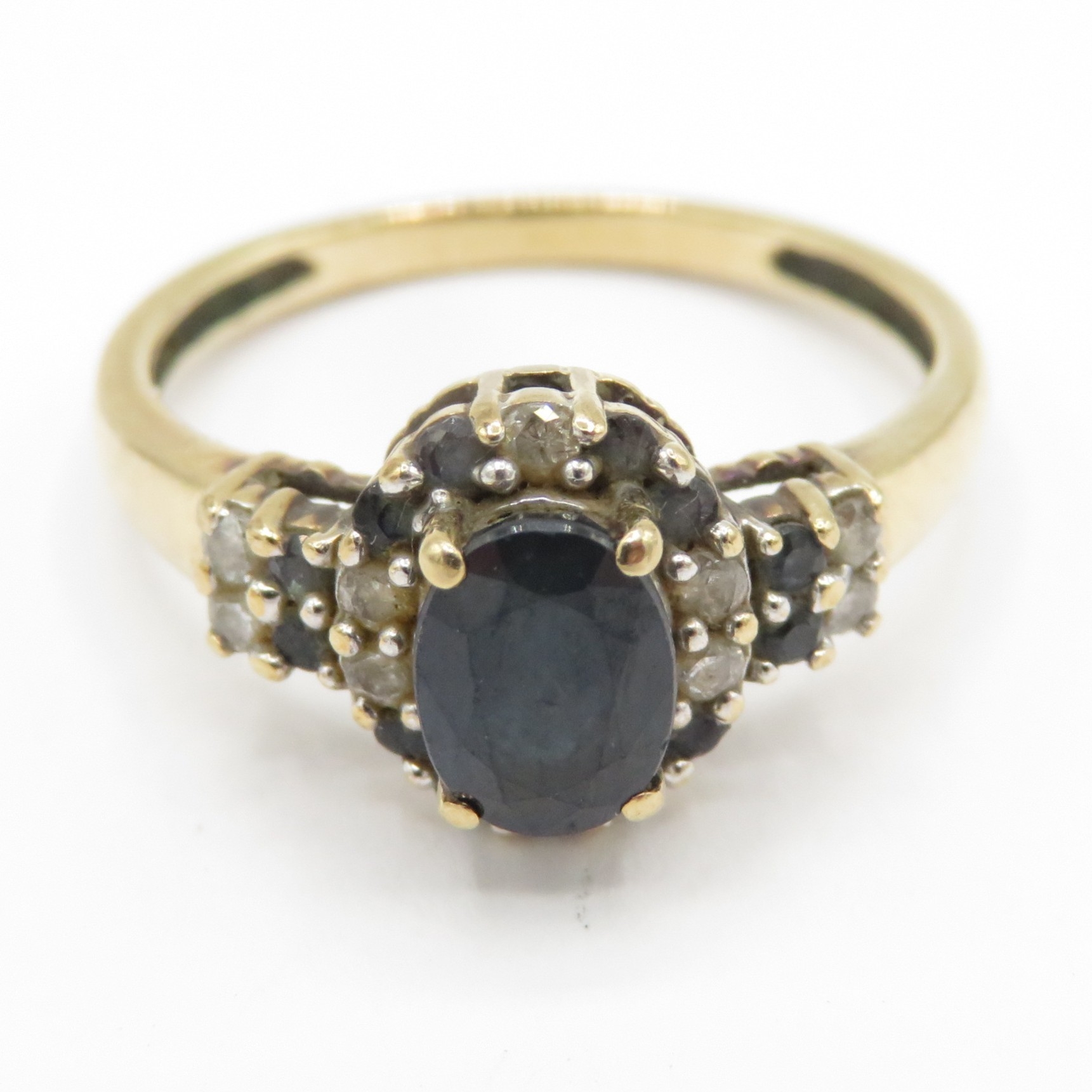9ct gold sapphire and diamond halo ring (2.4g) Size O