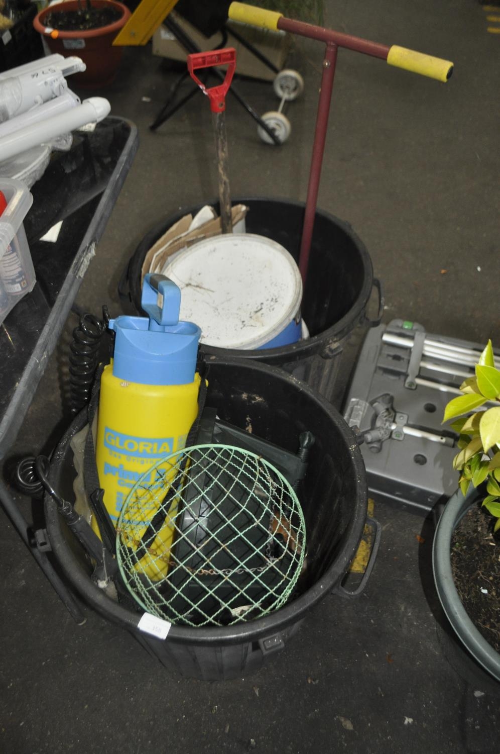 2 BLACK DUSTBINS FULL OF GARDEN ITEMS