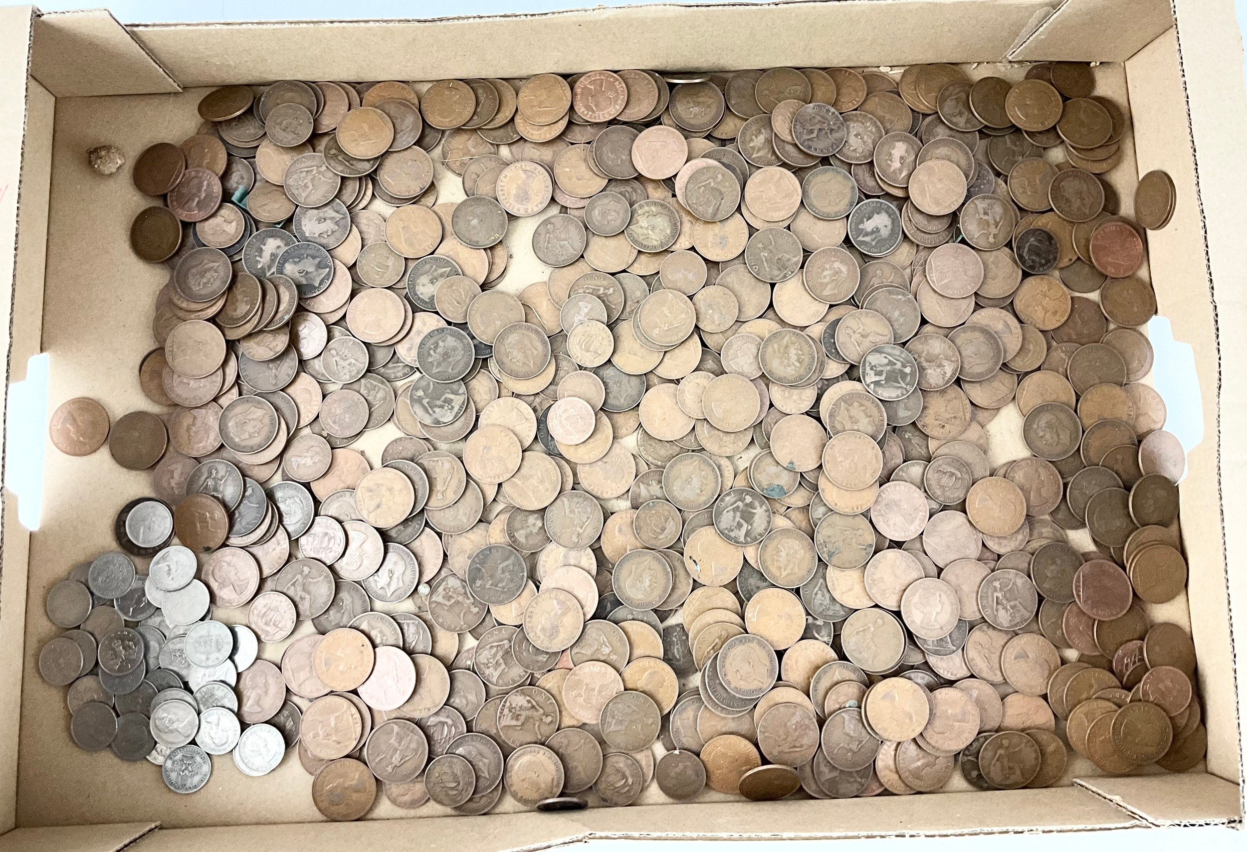 TRAY OF OLD COINS MAINLY OLD PENNIES