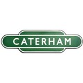 Totem, British Railways Southern Region F/F CATERHAM. A nice example of a southern black flanged variety, from the Surrey terminus station. Good colour, but loss of gloss. 36 x 10 inches. Shipping band - D.