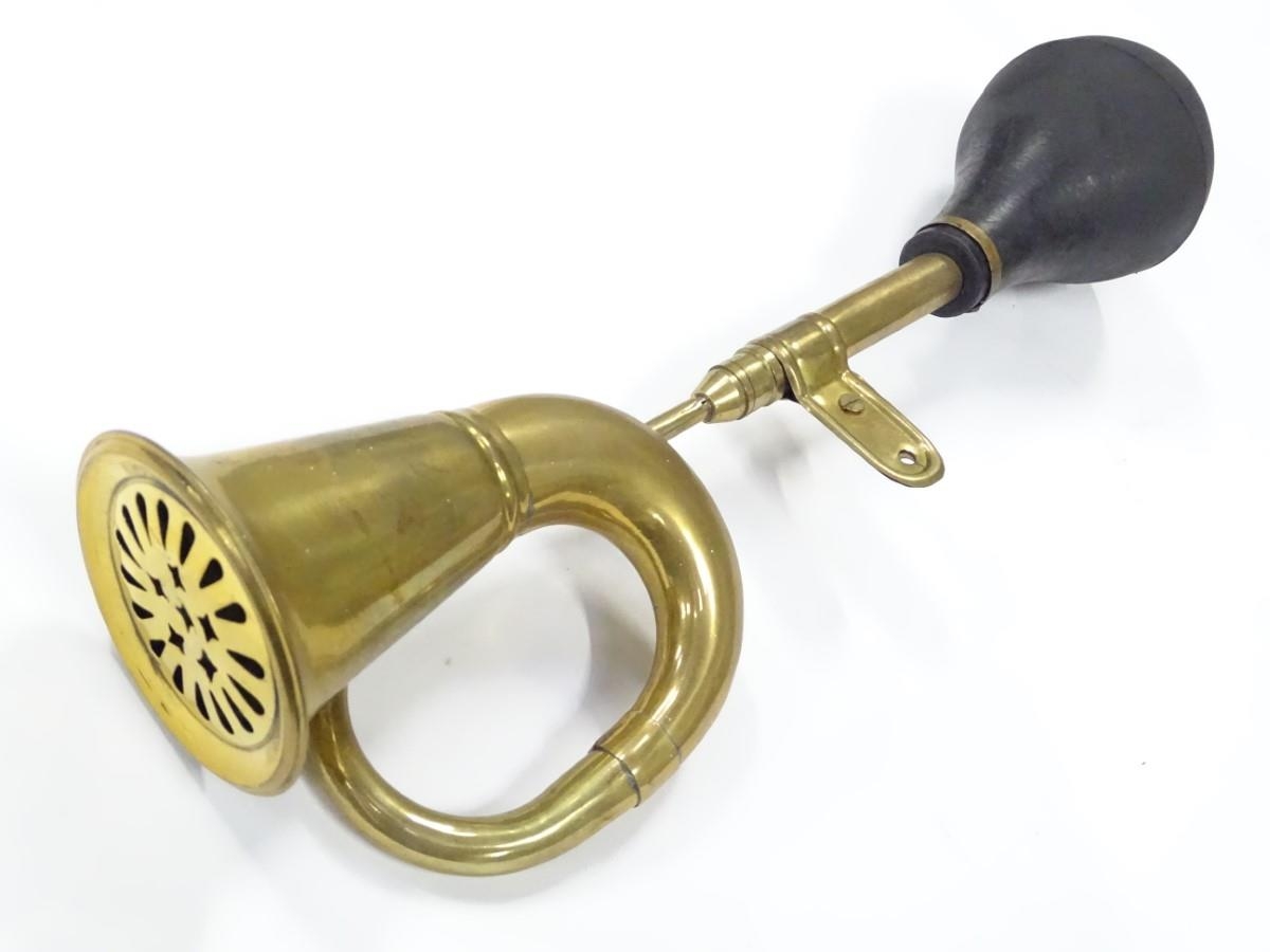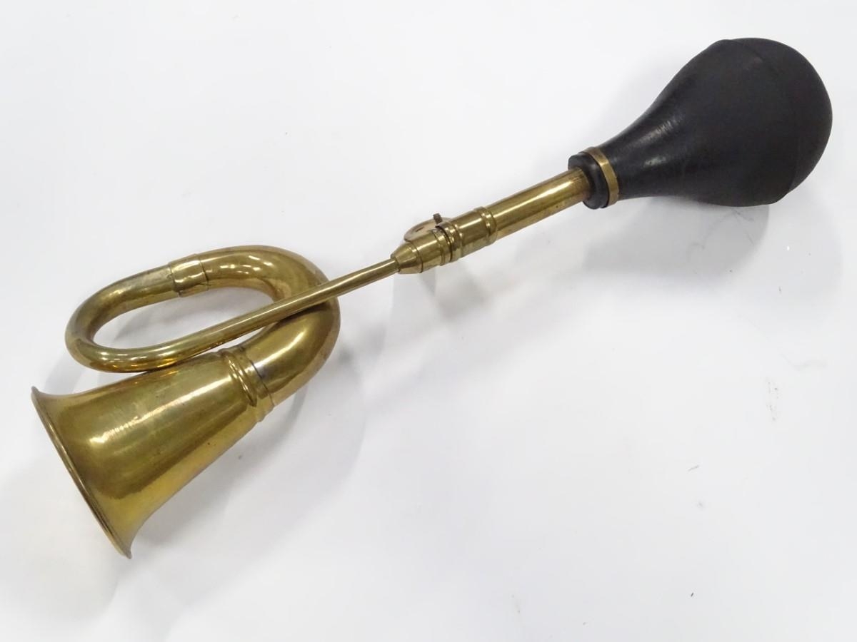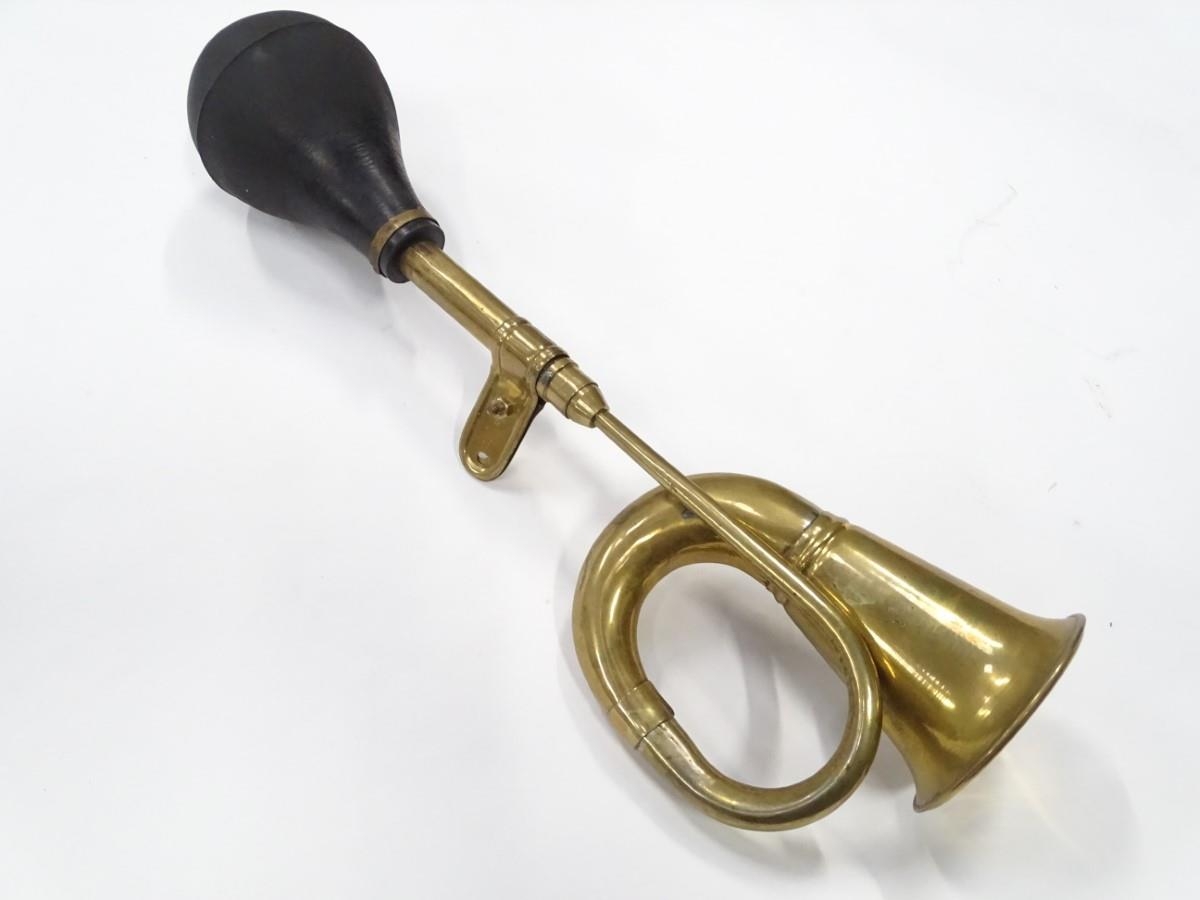 An imitation brass car horn, 17'' long