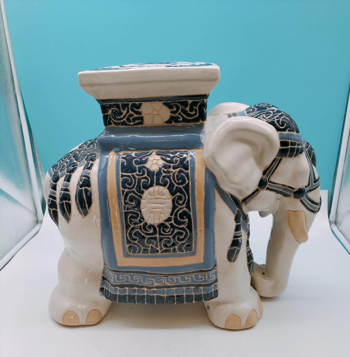 Large Ceramic Elephant Plant Stand. 43cm High, 56cm x 23cm.