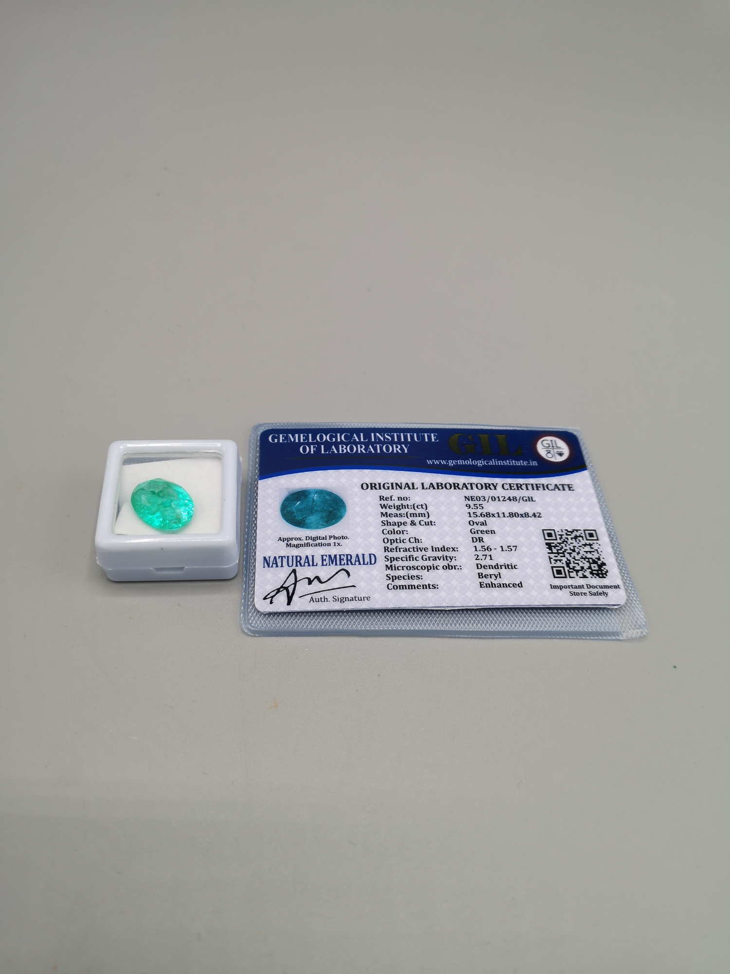 Natural emerald with 9.55 ct with certificate.