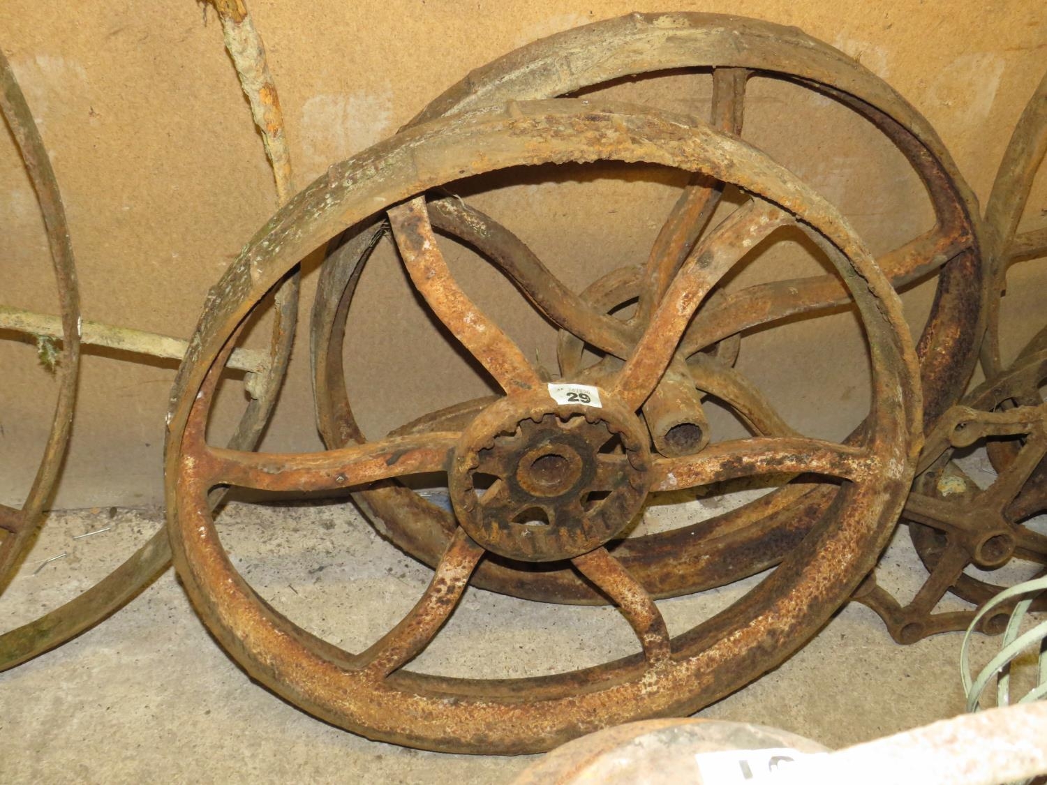 Pair cast iron 30". Diamter machinery wheels