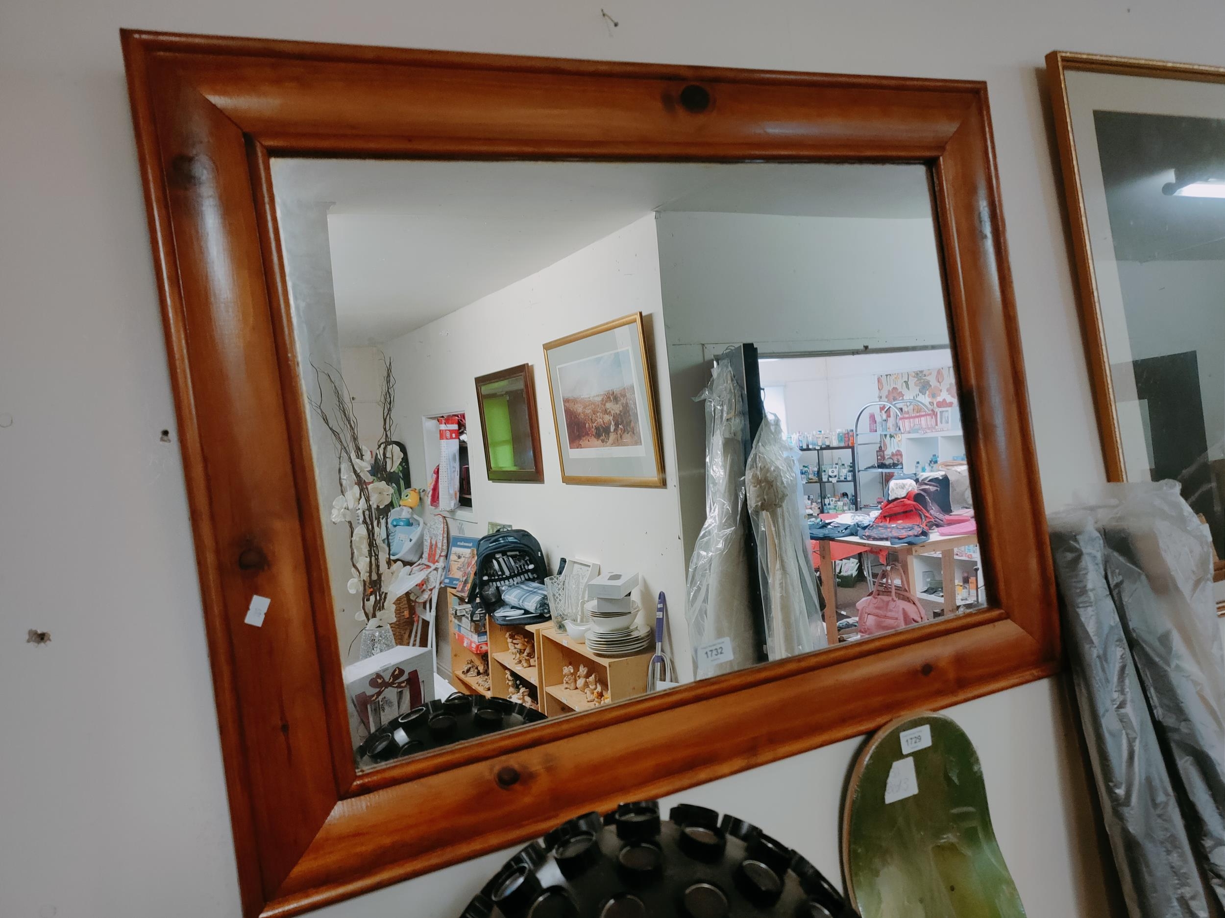 Large wall mounted wooden framed mirror