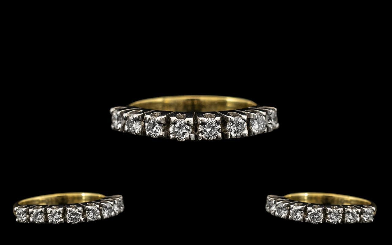 Ladies 18ct Gold and Platinum 8 Stone Diamond Set Half Eternity Ring - of excellent quality. All eight modern round brilliant cut diamonds of top colour / clarity. Estimated diamond weight 1.00 ct. Ring size K. All aspects of condition excellent including shank and setting.
