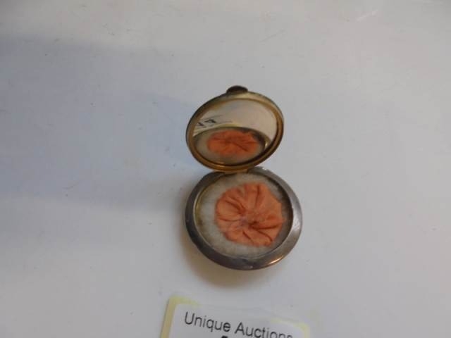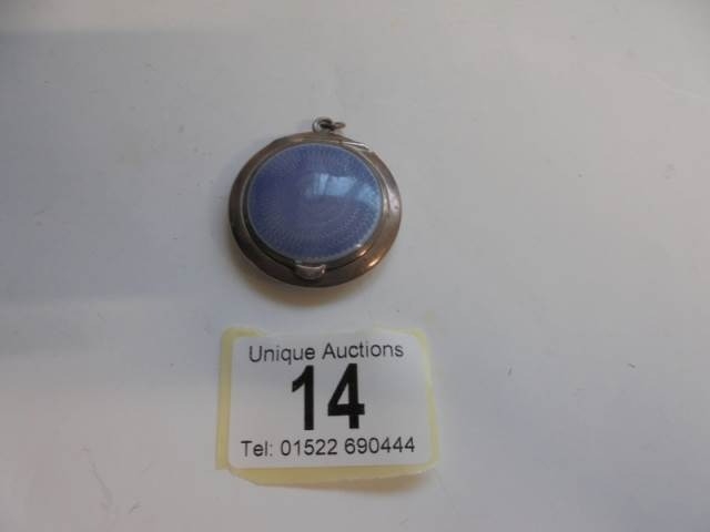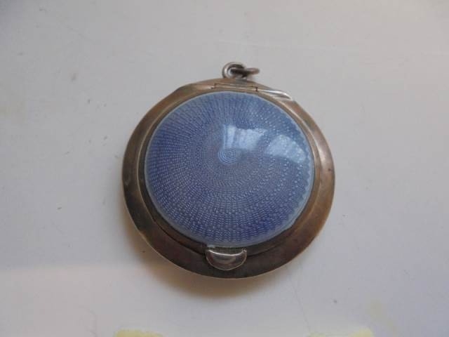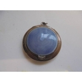 A silver enamel pendant powder compact with mirror.