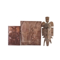 A group of three African Tribal wood carvings. Including a mask, etc. Max. 35cm x 42cm