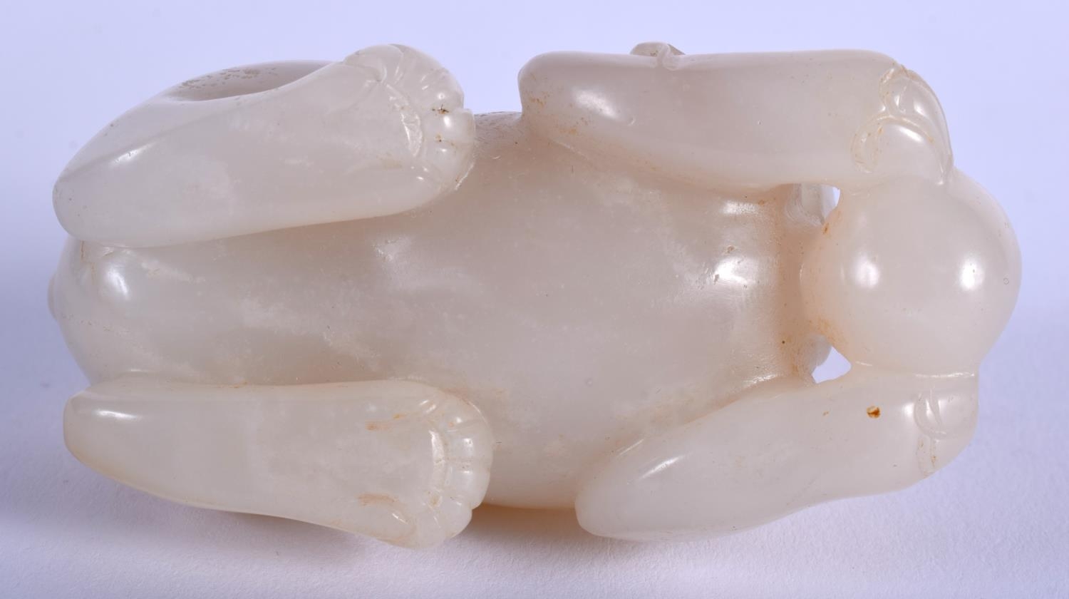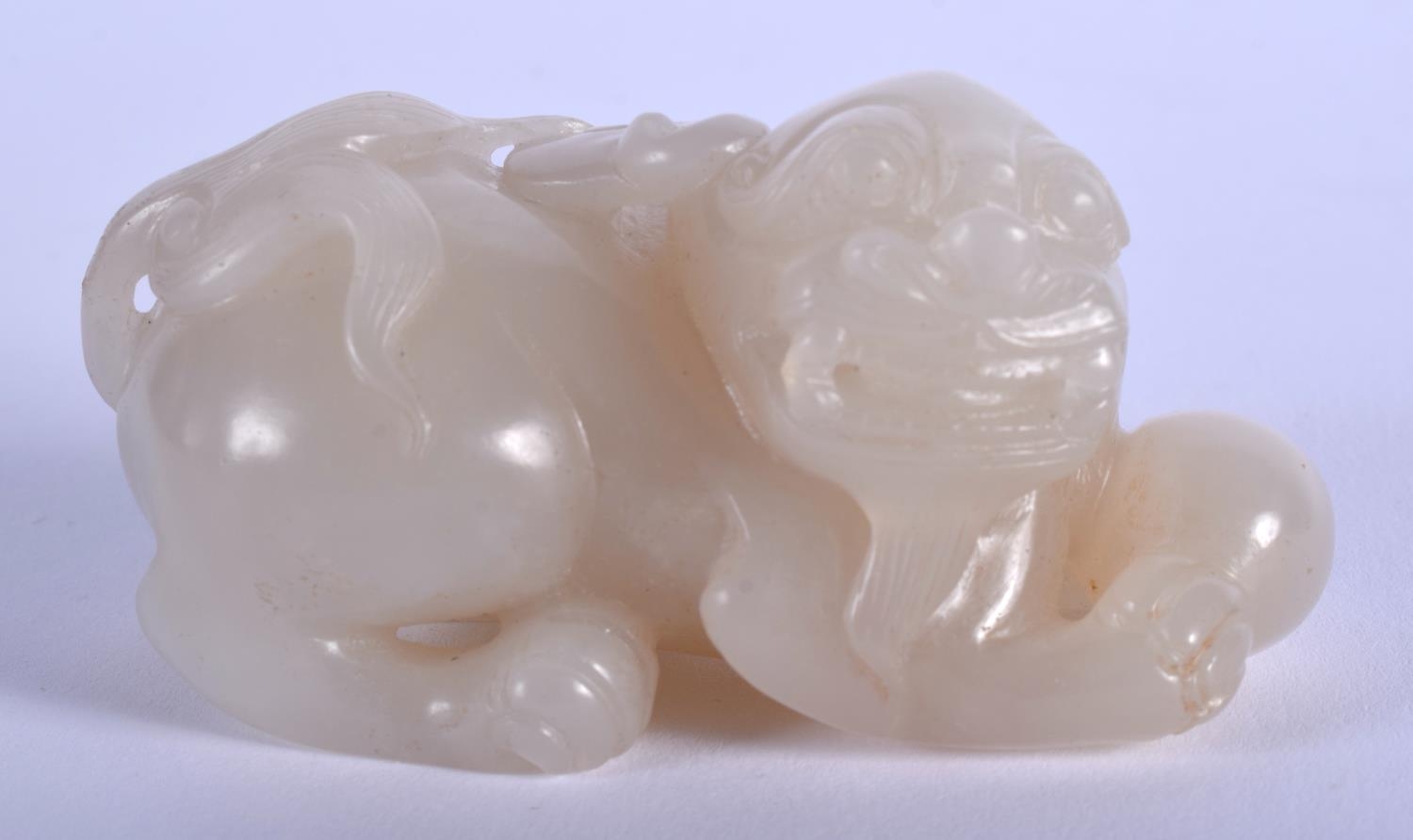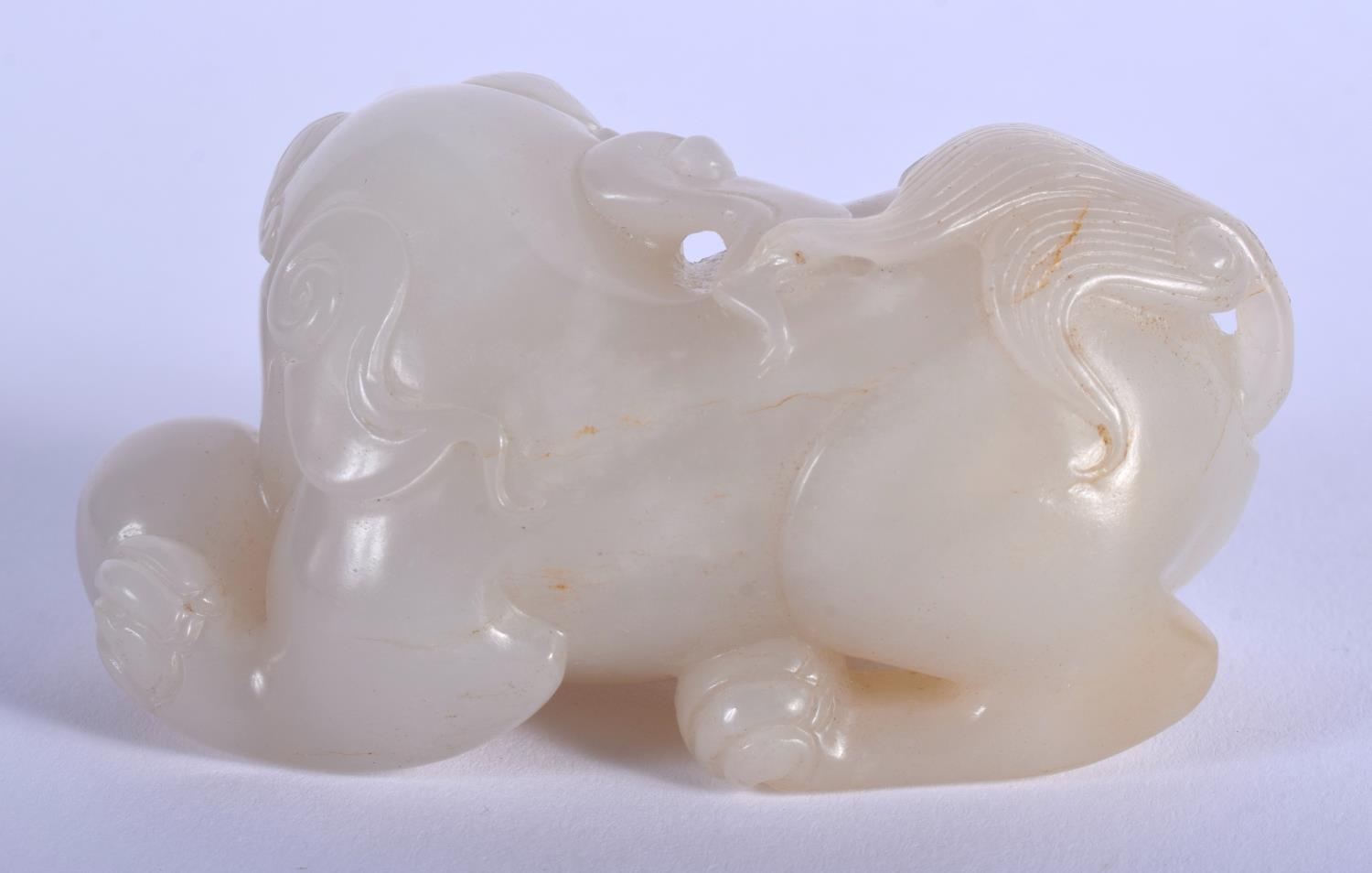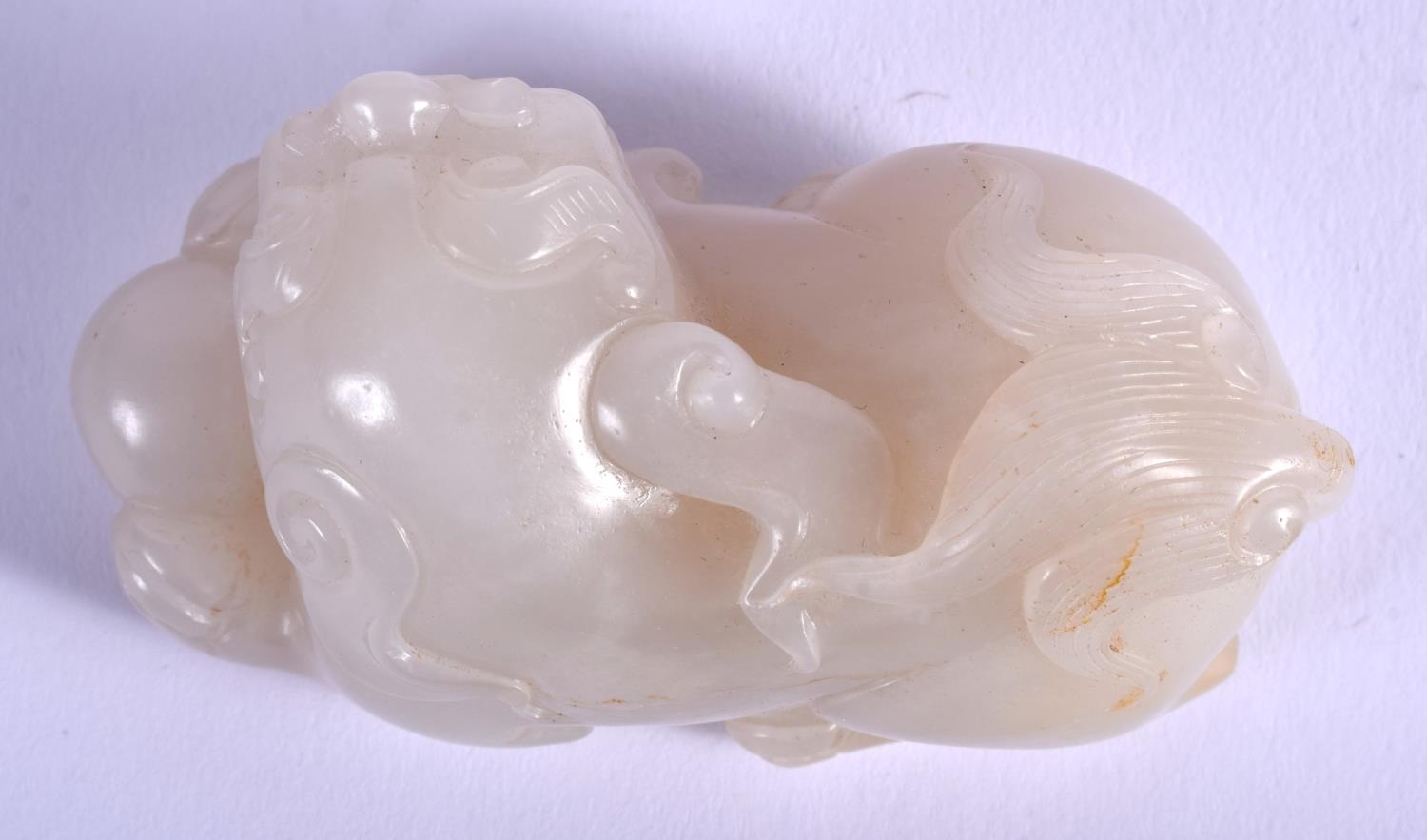 AN EARLY 20TH CENTURY CHINESE CARVED GREYISH WHITE JADE BEAST Late Qing/Republic. 7 cm x 4 cm.