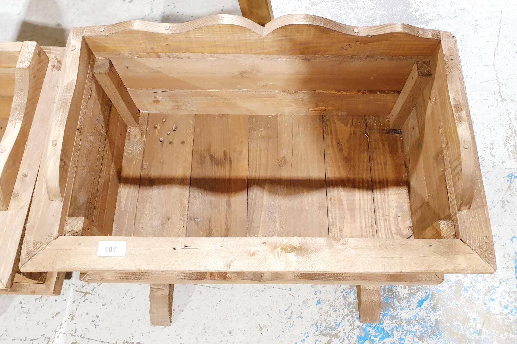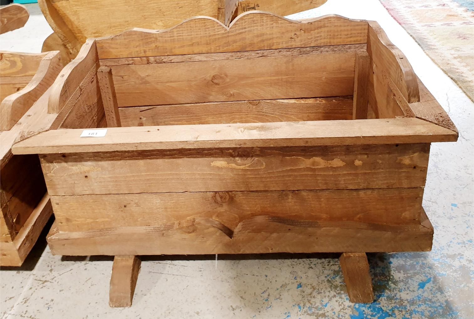 A wooden planter, 66x39.5x34.5cm. No shipping. Arrange collection or your own packer and shipper, please. Electricals are sold as scrap.
