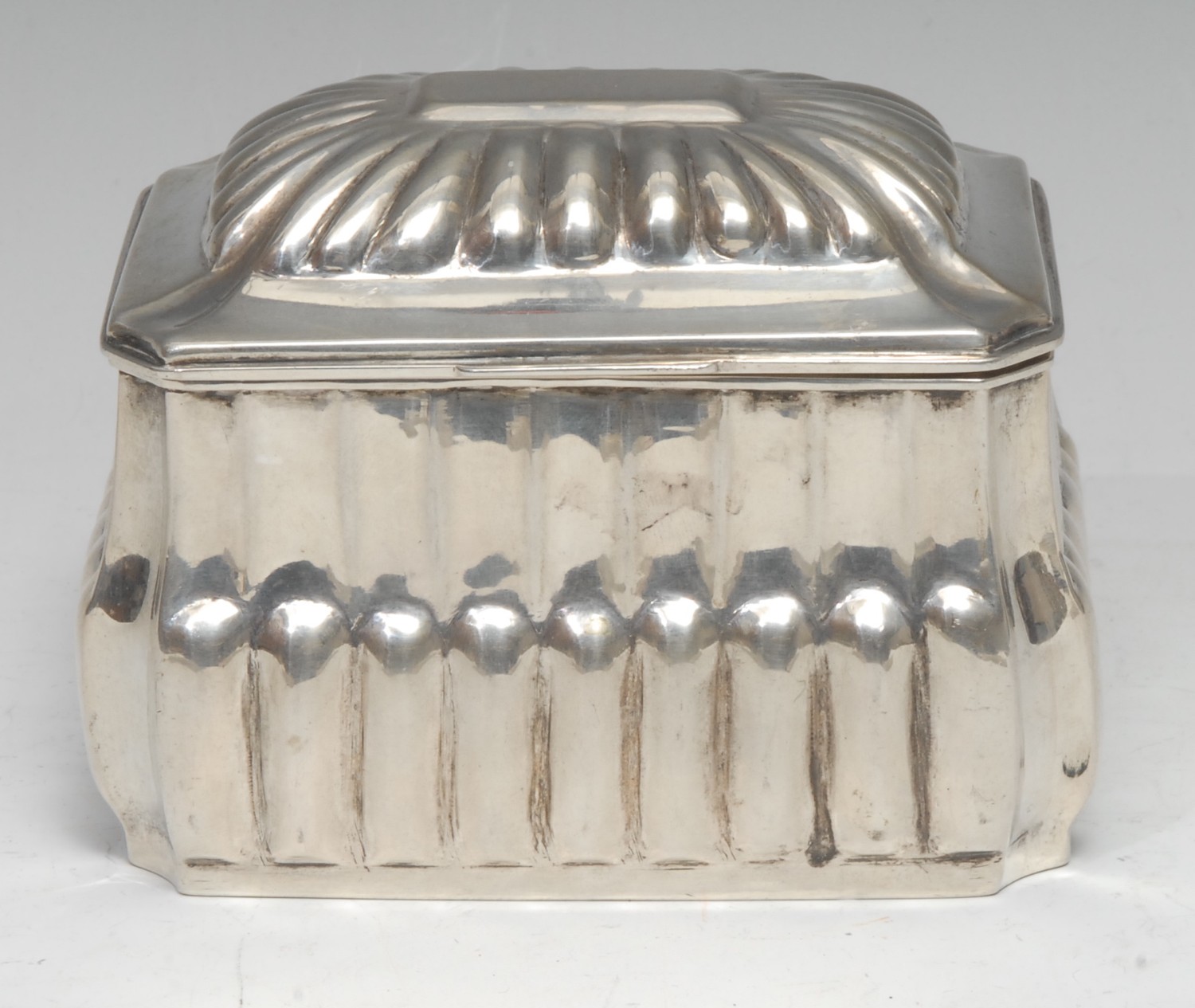 An Austrian silver fluted rectangular tea caddy, hinged cover, 12cm wide. c.1900, 14oz